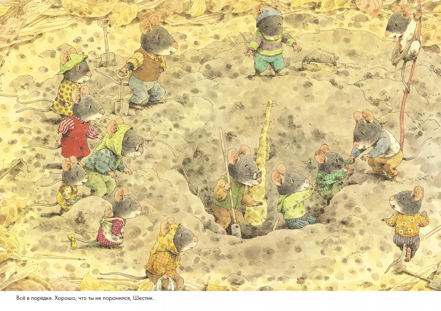 Осень в лесу – пора собирать урожай. Орехи и семена уже собраны. Отправляемся копать батат – сладкую картошку вместе с очаровательным семейством мышат из книг японского художника Кадзуо Ивамура. Непростое это дело, когда корень батата большой и прячется глубоко под землей! Но все возможно, когда вся семья – и маленькие, и большие – трудятся вместе. И какой красивый лет вокруг, и какой вкусный ужин из сладкой картошки получился, объеденье!
