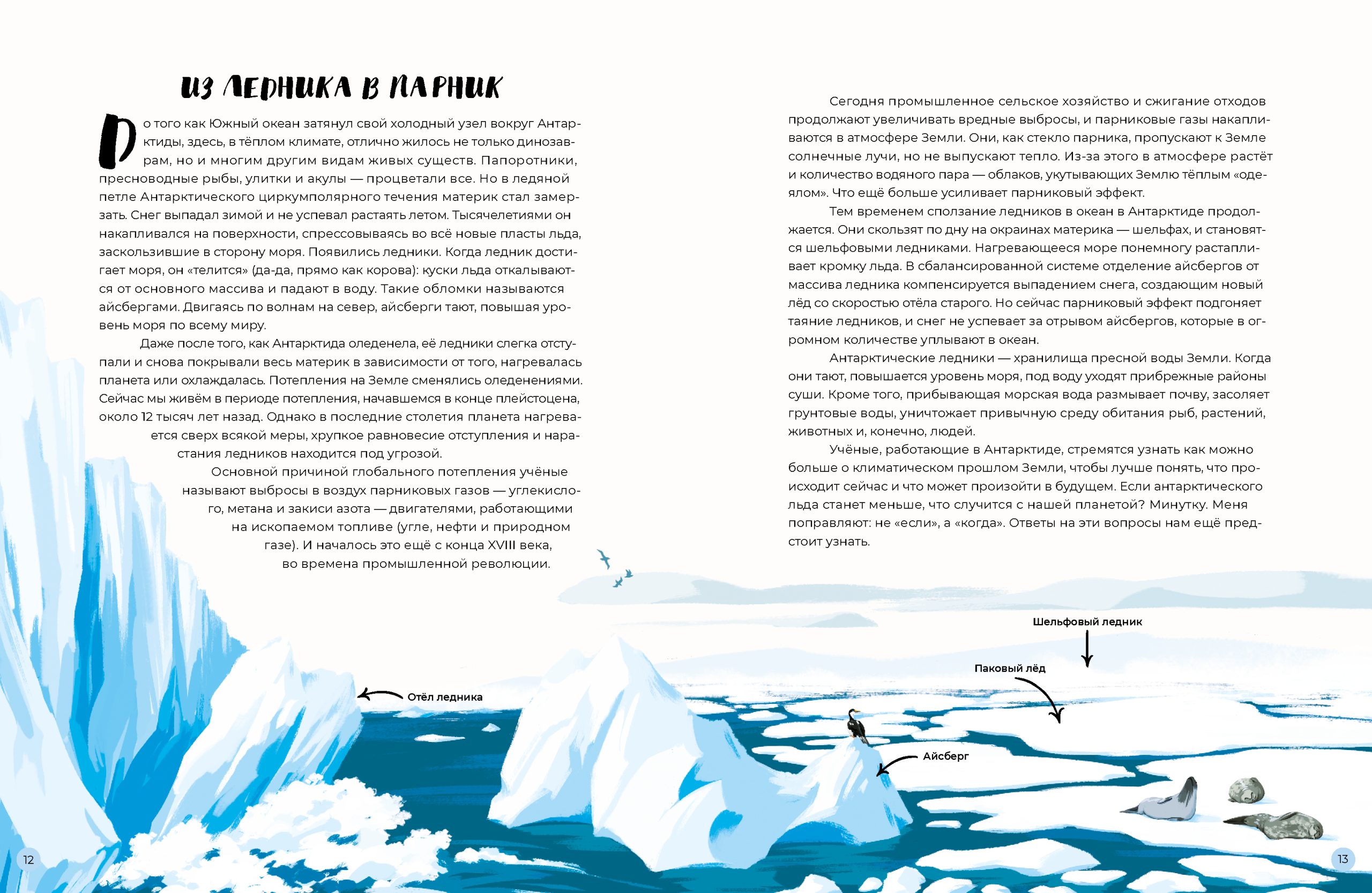 Автор создала эту книгу на основе многочисленных интервью с учеными, научных статей и собственного личного опыта на тающем континенте, а художник расцветила ее яркими и выразительными иллюстрациями.