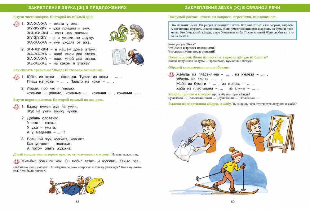 Неправильное произношение звуков и слов приносит много огорчений детям и родителям, так как затрудняет общение и может приводить к ошибкам при письме. Книга, которую вы держите в руках, поможет исправить недостатки произношения. Увлекательные задания и забавные иллюстрации сделают ваши занятия с ребёнком интересными. Ребёнок увеличит словарный запас, научится правильно и красиво говорить и перестанет испытывать трудности в общении со сверстниками и взрослыми.