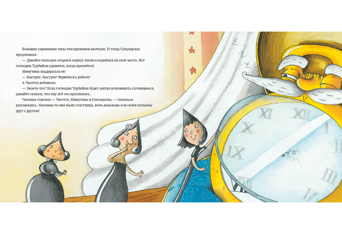 Часетта, Минутина, Секунделла – часовые стрелки. Они работают у важного и строгого господина Турбийона, следящего за точным ходом карманных часов. Каждый день подружки выполняют одну и ту же работу. И однажды часовые стрелки поссорились и… разбежались в разные стороны. Что же не поделили между собой подружки?
