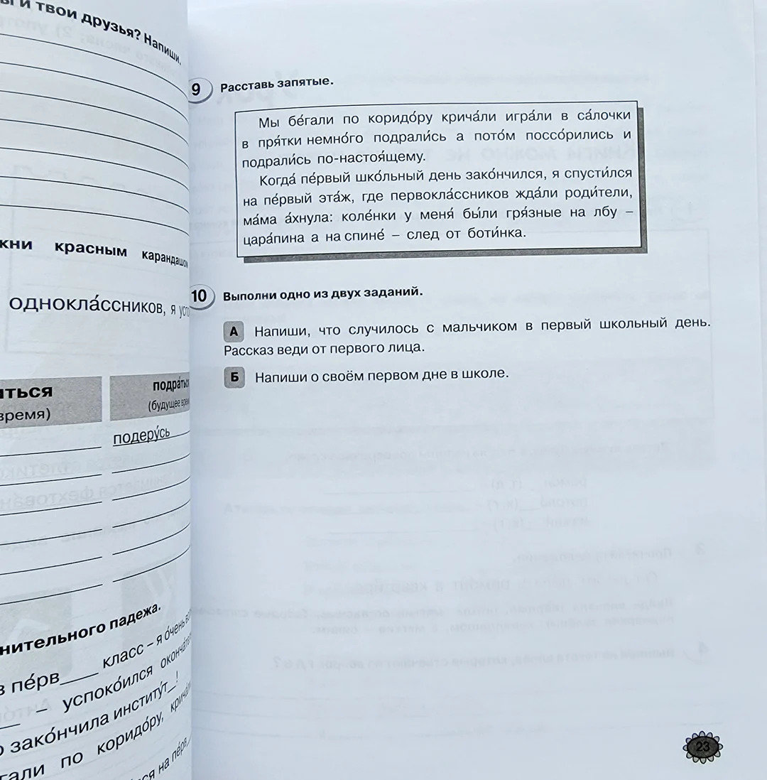 Рабочая тетрадь к пособию «Читаем и пишем по-русски» содержит разнообразные задания, направленные на развитие грамотности детей. Задания основаны на материале текстов основного пособия.