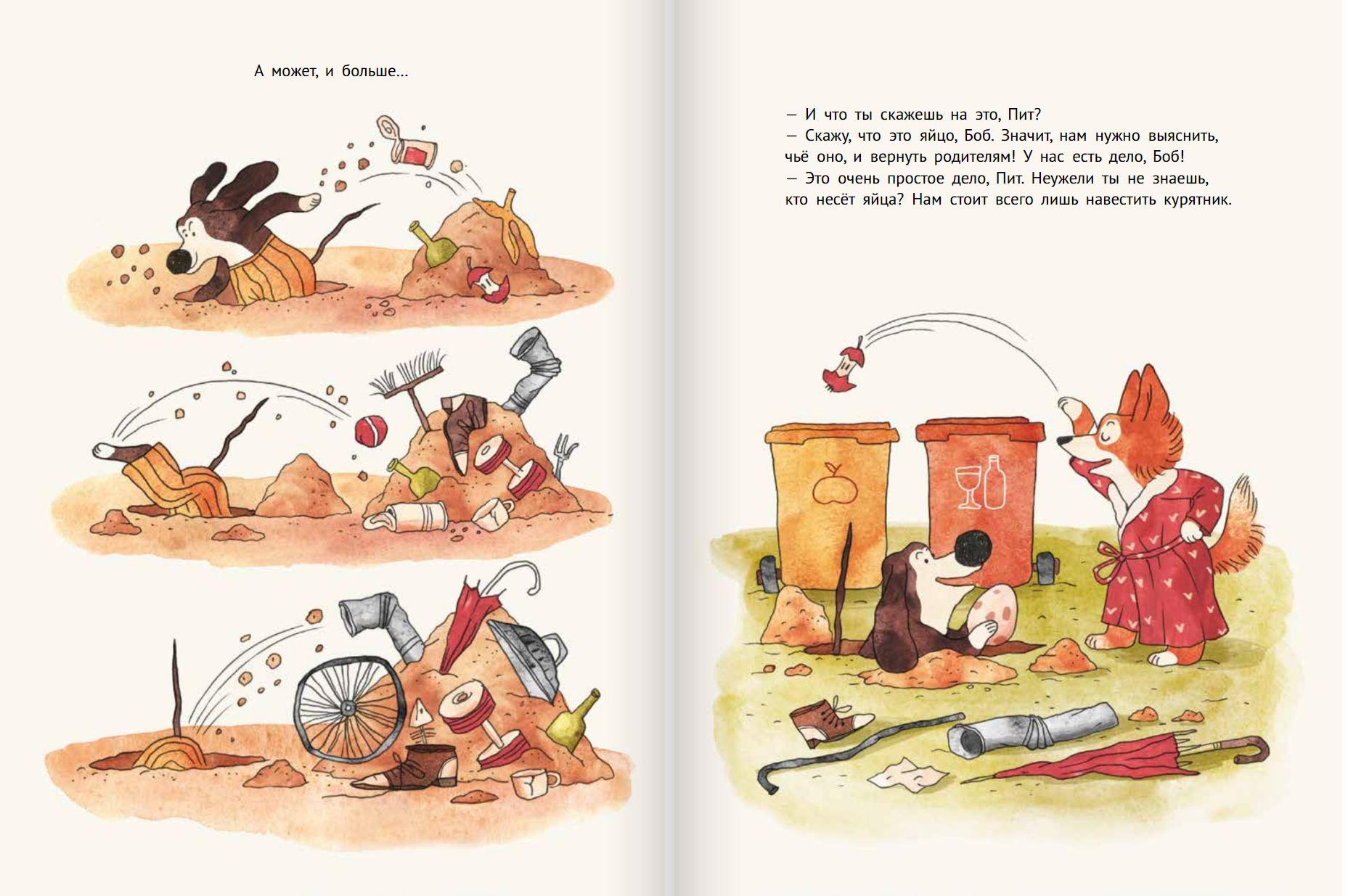 Пит и Боб — детективы-любители. Они обожают искать пропавшие вещи. Однажды Боб откапывает в саду яйцо: теперь у друзей есть дело! Надо выяснить, кому принадлежит потерянное яйцо, чтобы вернуть его родителям.