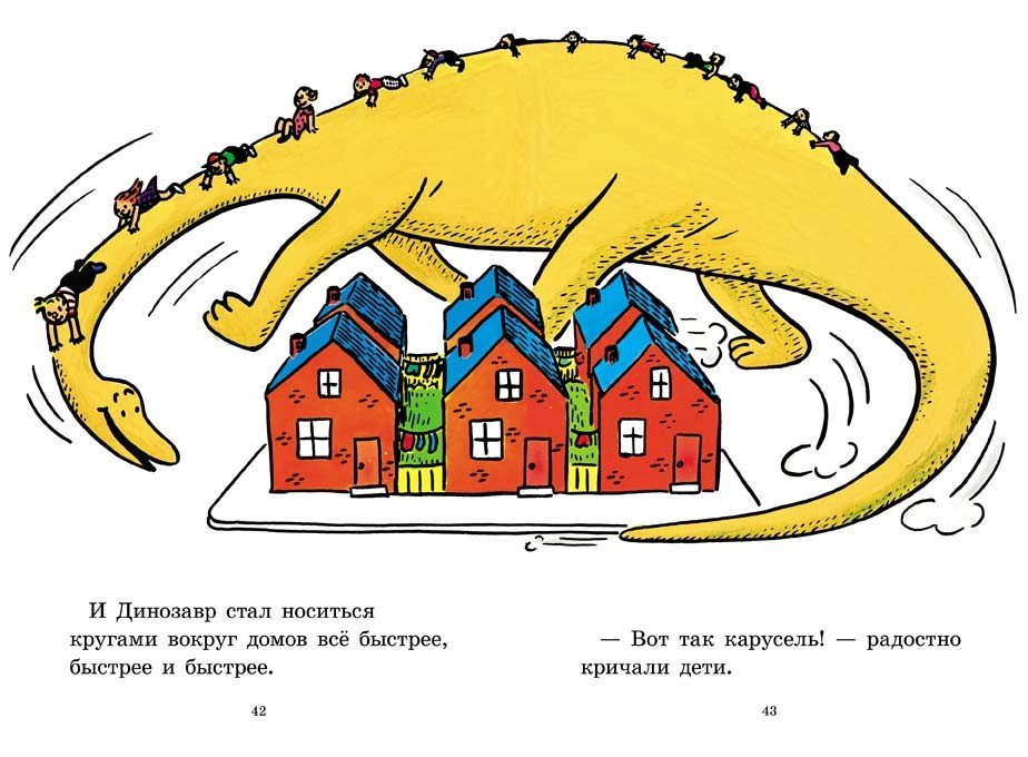 В сборник включены три сказки о Дэнни и Динозавре. Любознательный мальчик по имени Дэнни идет в музей. Он рассматривает индейцев, медведей, эскимосов, ружья, мечи. И, наконец, в одном из залов он видит динозавров. Дэнни разумный мальчик, он знает, что эти древние рептилии давно вымерли, но вдруг один из музейных динозавров заговорил с ним. Дэнни был по-настоящему счастлив. Восседая на шее нового друга, Дэнни отправляется в город. Пожалуй, Динозавру повезло даже больше, чем Дэнни. Он лакомится мороженым, играет с детьми в прятки, с удовольствием учится выполнять команды вместе со Щенком, совершает добрые дела – становится мостиком, по которому можно перейти на другую сторону улицы, и спасает попавшего в беду крановщика. Он даже становится знаменитостью: когда они с Дэнни приходят в зоопарк, все посетители, забыв про других зверей, рассматривают только Динозавра. Конечно, Дэнни хотел бы взять Динозавра к себе домой. Как было бы здорово жить вместе с таким удивительным, огромным и добрым домашним животным! Но оказывается Динозавру присуще чувство долга: он возвращается в музей, потому что ОН ТАМ НУЖЕН. И на прощание он говорит, что вместе с Дэнни он пережил свой самый лучший за много миллионов лет день. Истории про Дэнни и Динозавра по праву считаются классикой детского раннего чтения. Единое пространство из слов и картинок придает