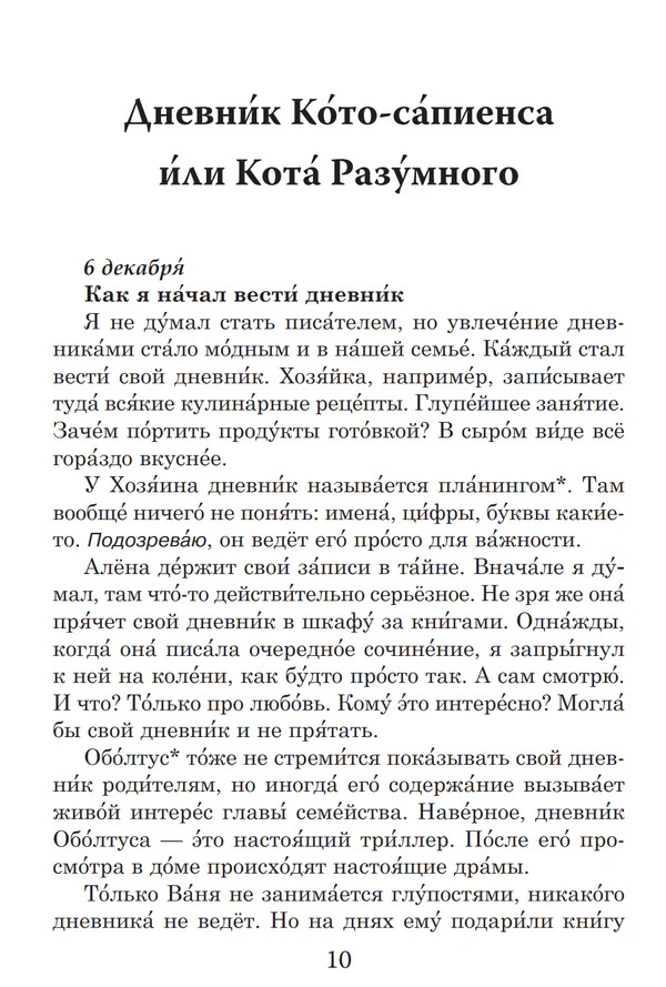 Повесть написана от лица кота Барсика, который в дневнике рассказывает о своих приключениях. Он с юмором описывает, как он живёт в одной большой семье.