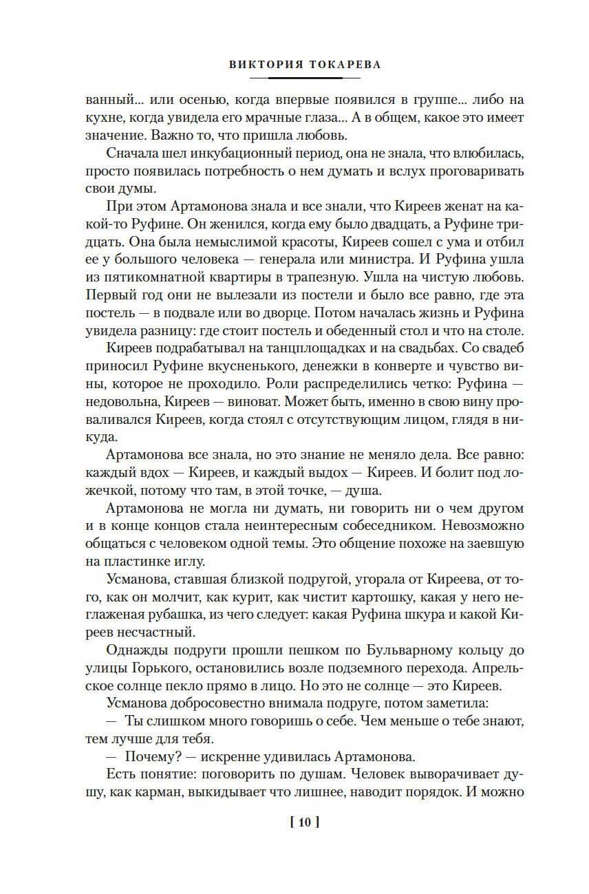 Виктория Токарева – известный писатель и сценарист, знакомый российским зрителям по любимым с детства фильмам: “Урок литературы”, “Джентльмены удачи”, “Мимино”, “Шла собака по роялю”, “Ты есть…”. Особое место в творчестве Токаревой занимают рассказы и повести, теплые и живые, с мягким юмором, написанные неподражаемым, легким, “токаревским” языком. С симпатичными героями, которые порой напоминают нас самих. “Виктория Токарева смотрит на мир так, будто другие глаза его еще не видели, будто ей дана возможность впервые обнаружить природу и суть вещей… она переоткрывает мир вокруг нас”, – писал Юрий Нагибин. “Пушкинское спокойствие” – так можно сказать о прозе Виктории Токаревой, произведения которой утешают и помогают принимать жизнь, как она есть, во всей ее полноте, сложности и хрупкой прелести.