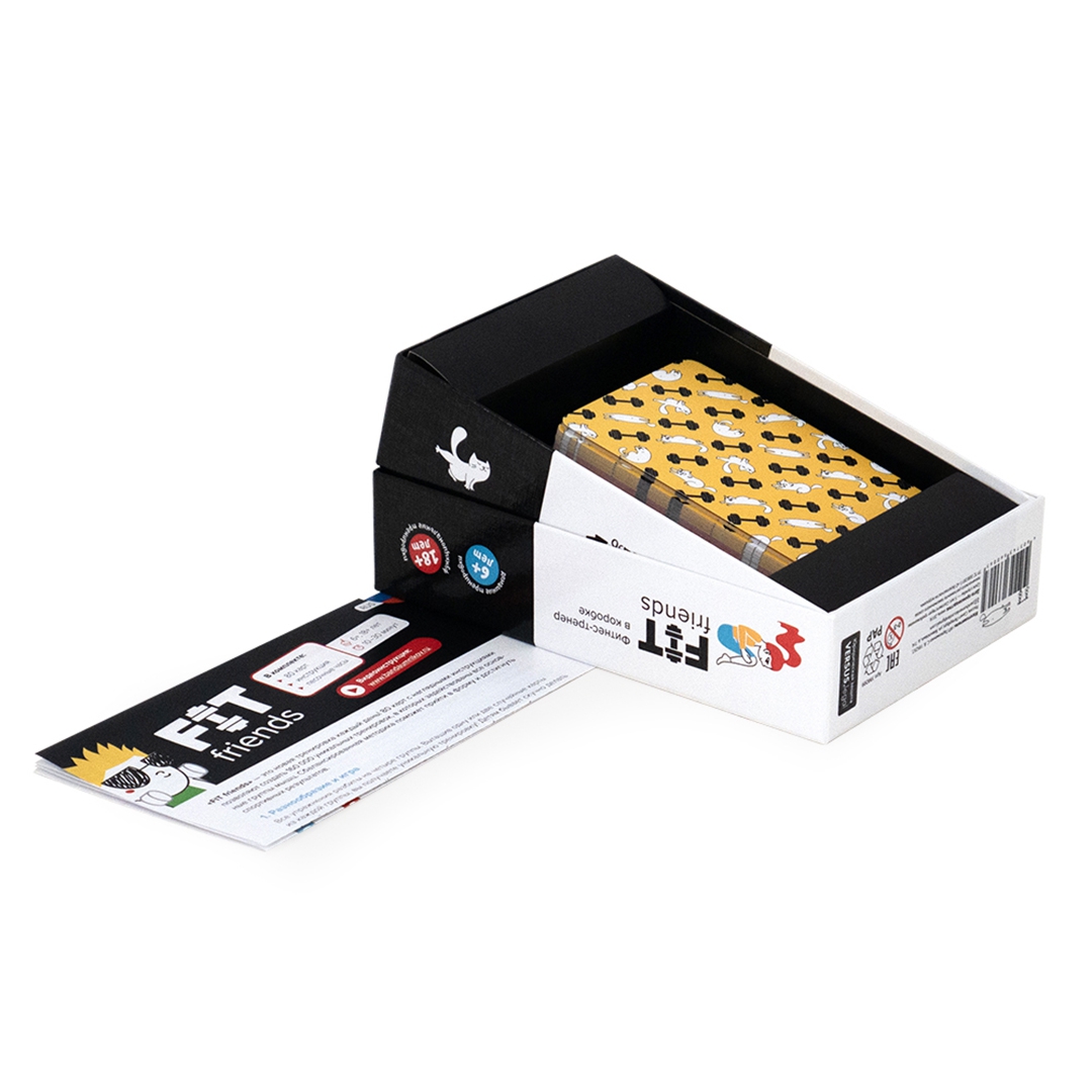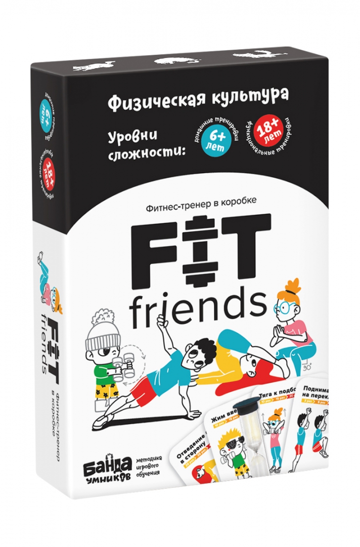 Заниматься спортом всегда непросто: требуется постоянство и сила воли. Играть в спорт – другое дело. “FIT friends” создаёт среду, полную взаимодействия, соперничества, эмоций и азарта и объединяет семьи. “FIT friends” – это новая тренировка каждый день! 80 карт с наглядными инструкциями позволяют создать 160 000 уникальных тренировок, в которых задействованы все основные группы мышц. Сбалансированная методика поможет прийти в форму и достичь спортивных результатов прямо у вас дома или на улице.