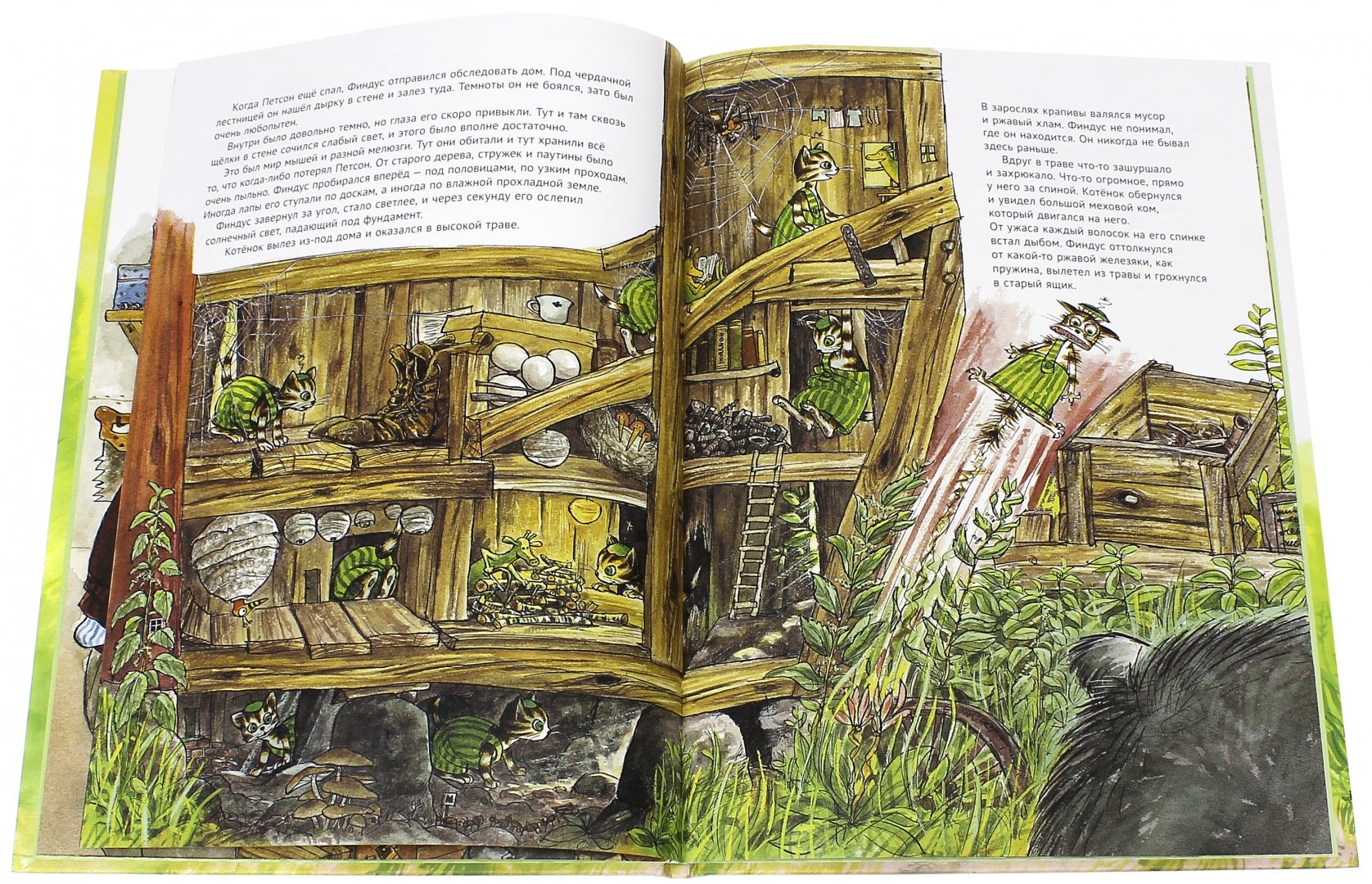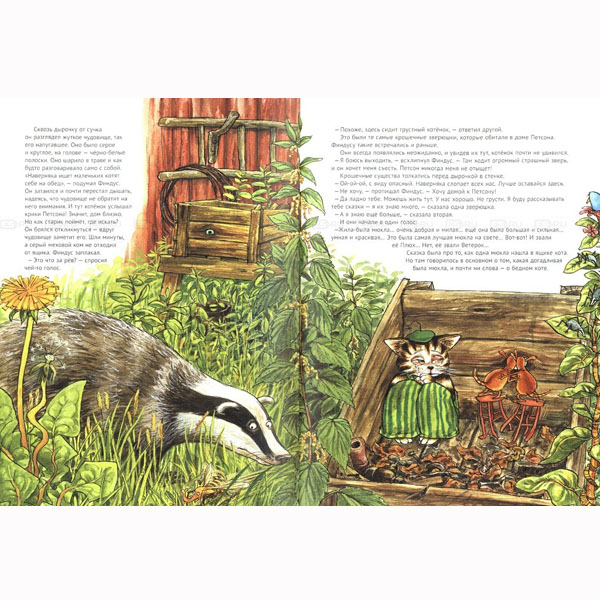 Петсон был самым обычным одиноким стариком, пока в один прекрасный день соседка не принесла ему большую коробку, в которой сидел крошечный котёнок. Жизнь Петсона изменилась, теперь ему скучать не приходится! Эта книга о том, почему Финдуса зовут Финдусом, откуда у него такие смешные полосатые штаны и как ему удалось спастись от страшного чудовища.Для детей младшего школьного возраста.