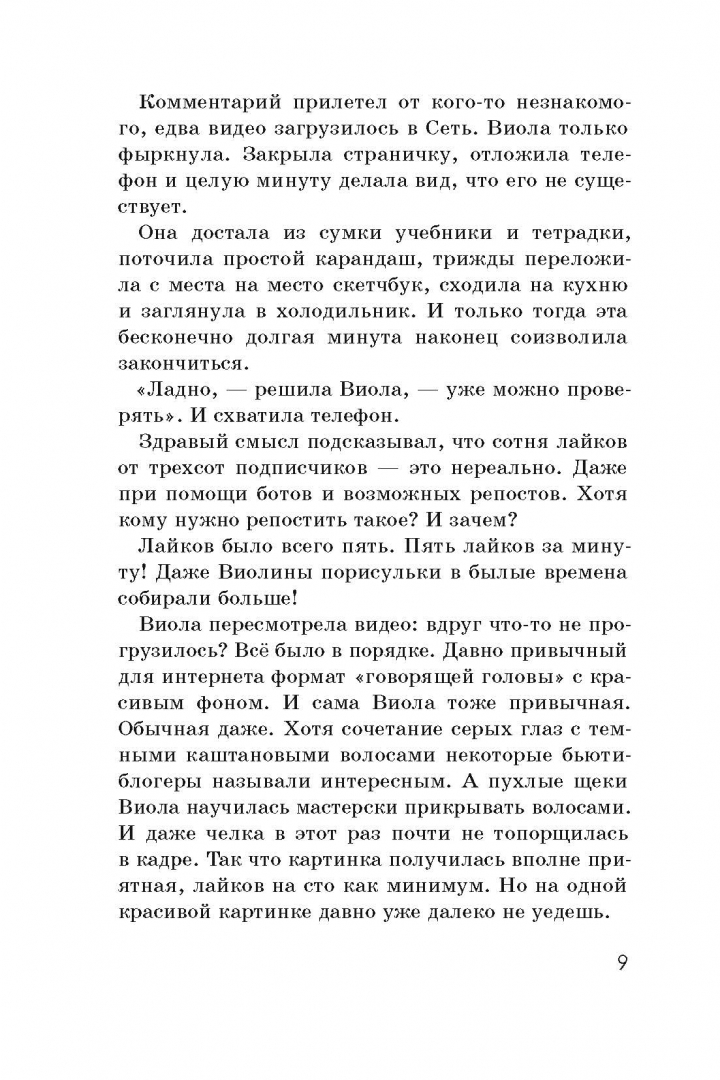 Сегодня ты собираешь первую сотню лайков, а завтра уже не можешь остановиться, ведь желание обрести популярность затуманивает взор и заставляет идти на всё более радикальные поступки. Еще и эта идея с видео из новой рубрики “Возьми меня на слабо” начинает выходить из-под контроля и превращается в кошмар наяву. Рассерженные подписчики ждут, когда ты уже исполнишь обещанное, а собственное отражение в зеркале начинает как-то странно себя вести. И всё больше кажется, что кто-то посторонний управляет твоей жизнью…Татьяна Донценко уже знакома читателям “Пяти четвертей” по триллеру “Эрго набирает сообщение”, психологической повести “Проснись!” и математическому фэнтези “Три аксиомы мироздания”. Новая книга “Я – Ви” – еще один блестяще написанный триллер про подростков-блогеров, которые на пути к популярности могут потерять себя.