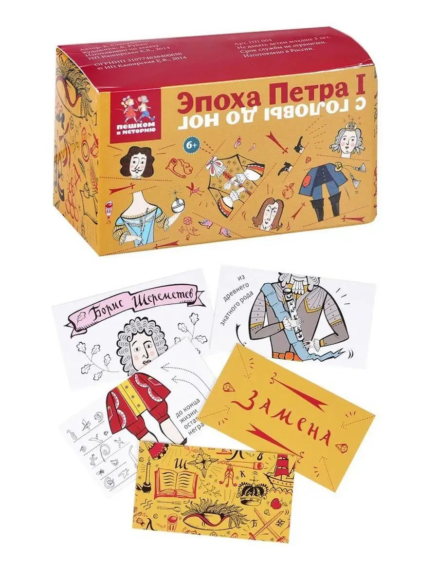 Короли, ученые, государственные мужи и полководцы – 14 важнейших персонажей первой четверти XVIII века в одной колоде! Веселая и увлекательная историческая игра “Эпоха Петра I с головы до ног!” познакомит с героями того времени и поможет развить логику и воображение.