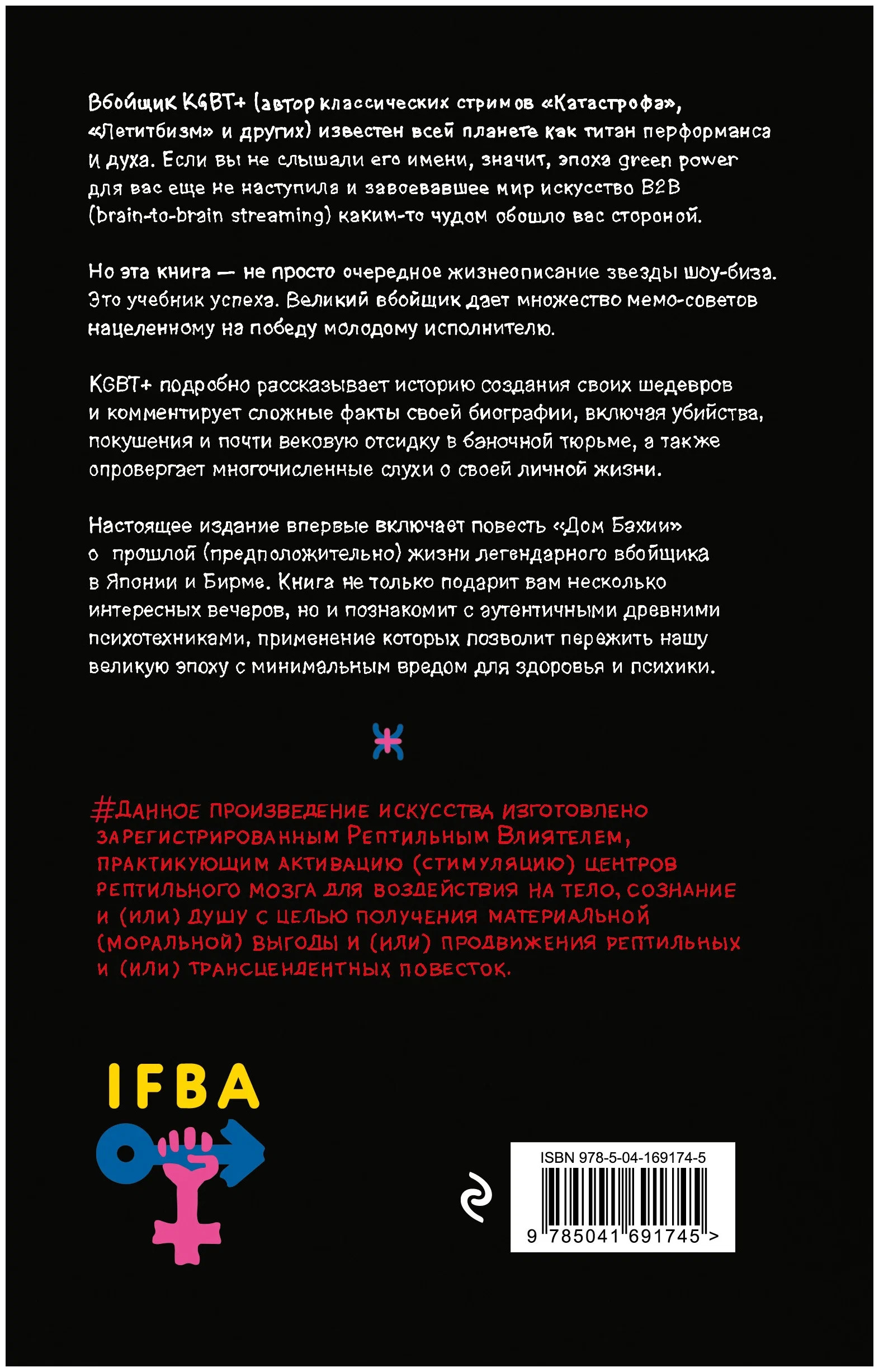 Но эта книга – не просто очередное жизнеописание звезды шоу-биза. Это учебник успеха. Великий вбойщик дает множество мемо-советов нацеленному на победу молодому исполнителю. KGBT+ подробно рассказывает историю создания своих шедевров и комментирует сложные факты своей биографии, включая убийства, покушения и почти вековую отсидку в баночной тюрьме, а также опровергает многочисленные слухи о своей личной жизни. Настоящее издание впервые включает повесть “Дом Бахии” о прошлой (предположительно) жизни легендарного вбойщика в Японии и Бирме.