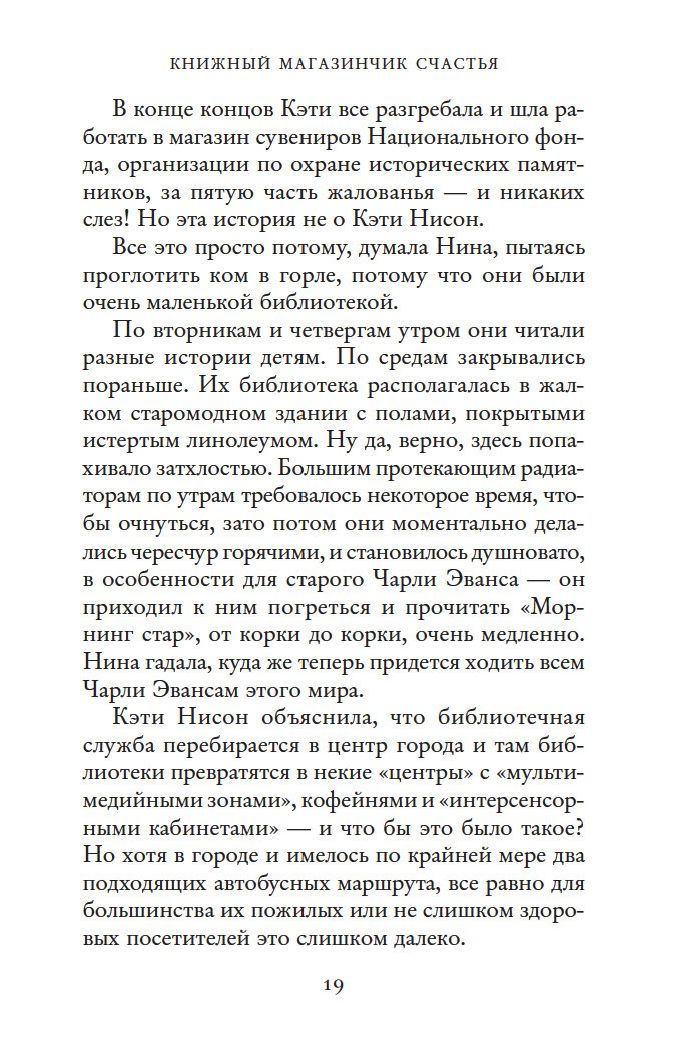 Несмотря на свою застенчивость, Нина Редмонд одержима подлинной, всепоглощающей страстью. Она любит книги – и конечно, читателей, ведь Нина работает в одной из старых библиотек Бирмингема. Но библиотеку закрывают. Как жить дальше, а главное – на что жить? Все, что Нина умеет делать в свои двадцать девять лет, – искать “конкретные книги для конкретных людей”. И тут она понимает, что больше всего на свете ей хотелось бы открыть маленький книжный магазин! И она решается на отчаянный шаг: едет в Шотландию, где по объявлению продается старый фургон, покупает его и приспосабливает под передвижную книжную лавку. Покоренная красотой и своеобразием шотландской земли, Нина остается здесь надолго. Ее ждут новые встречи, и одна из них обещает очень многое…