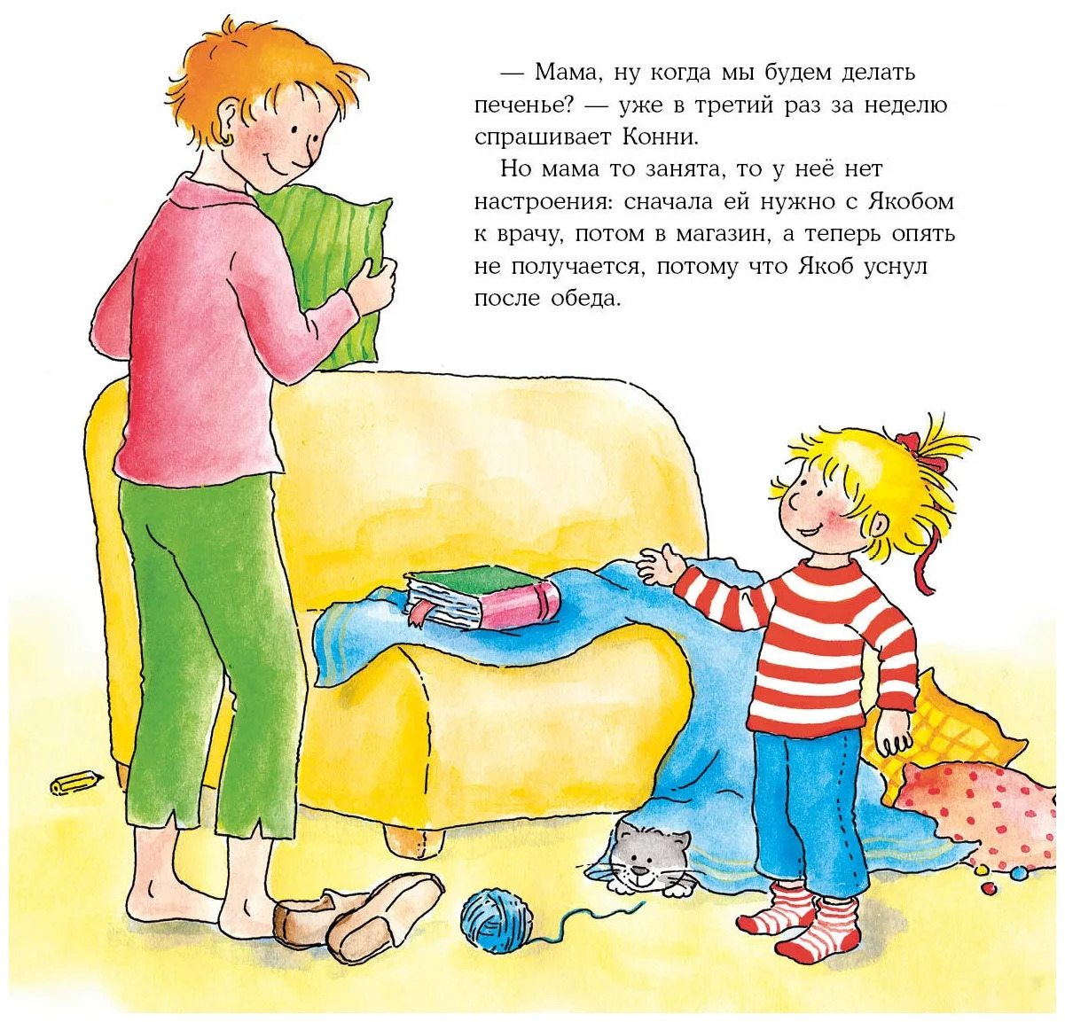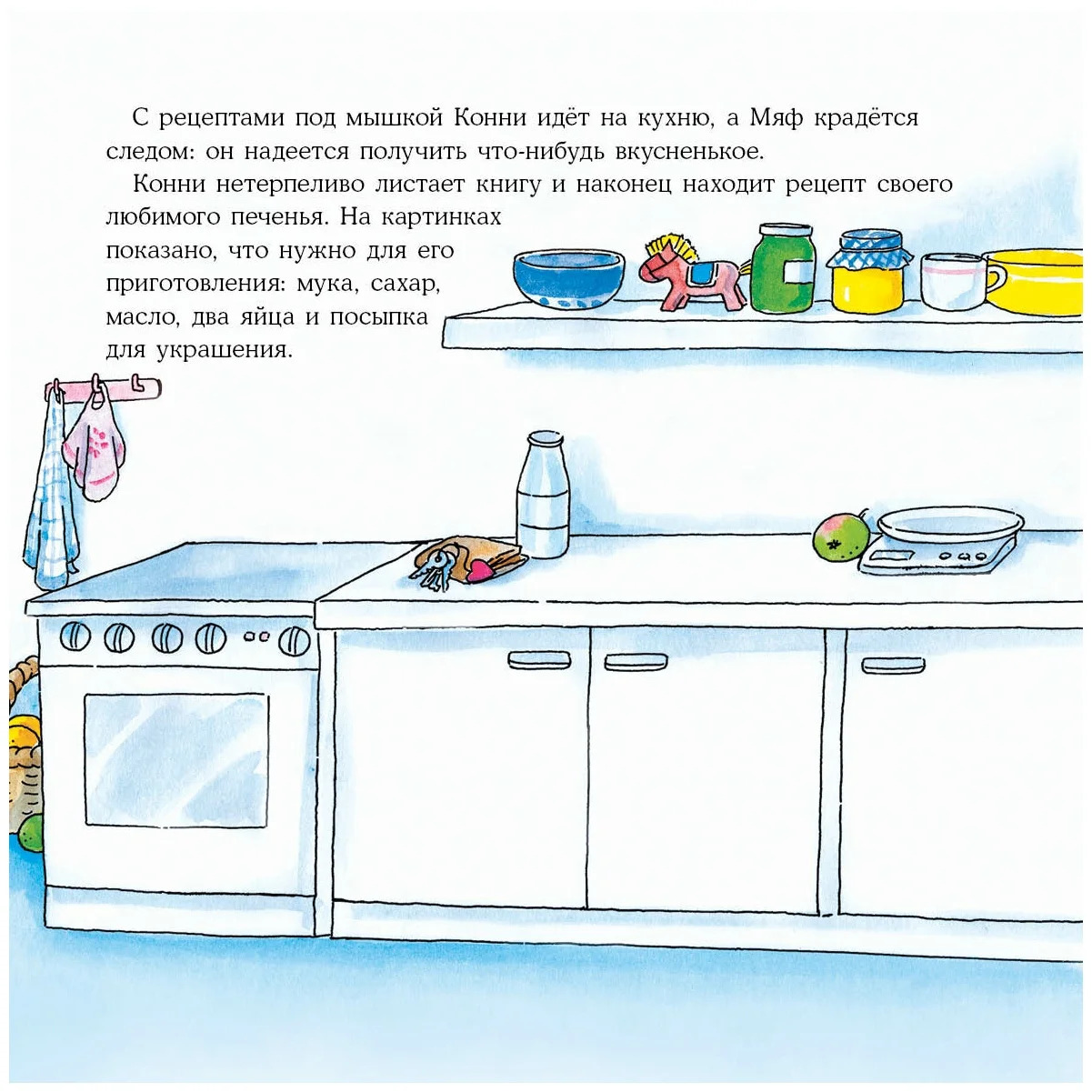 Конни решила сама приготовить печенье, не дожидаясь, пока мама ей в этом поможет. К счастью, у мамы всё-таки нашлось время, и печенье у них получилось вкусное и очень красивое.