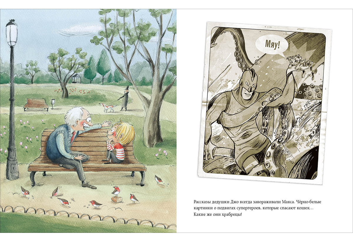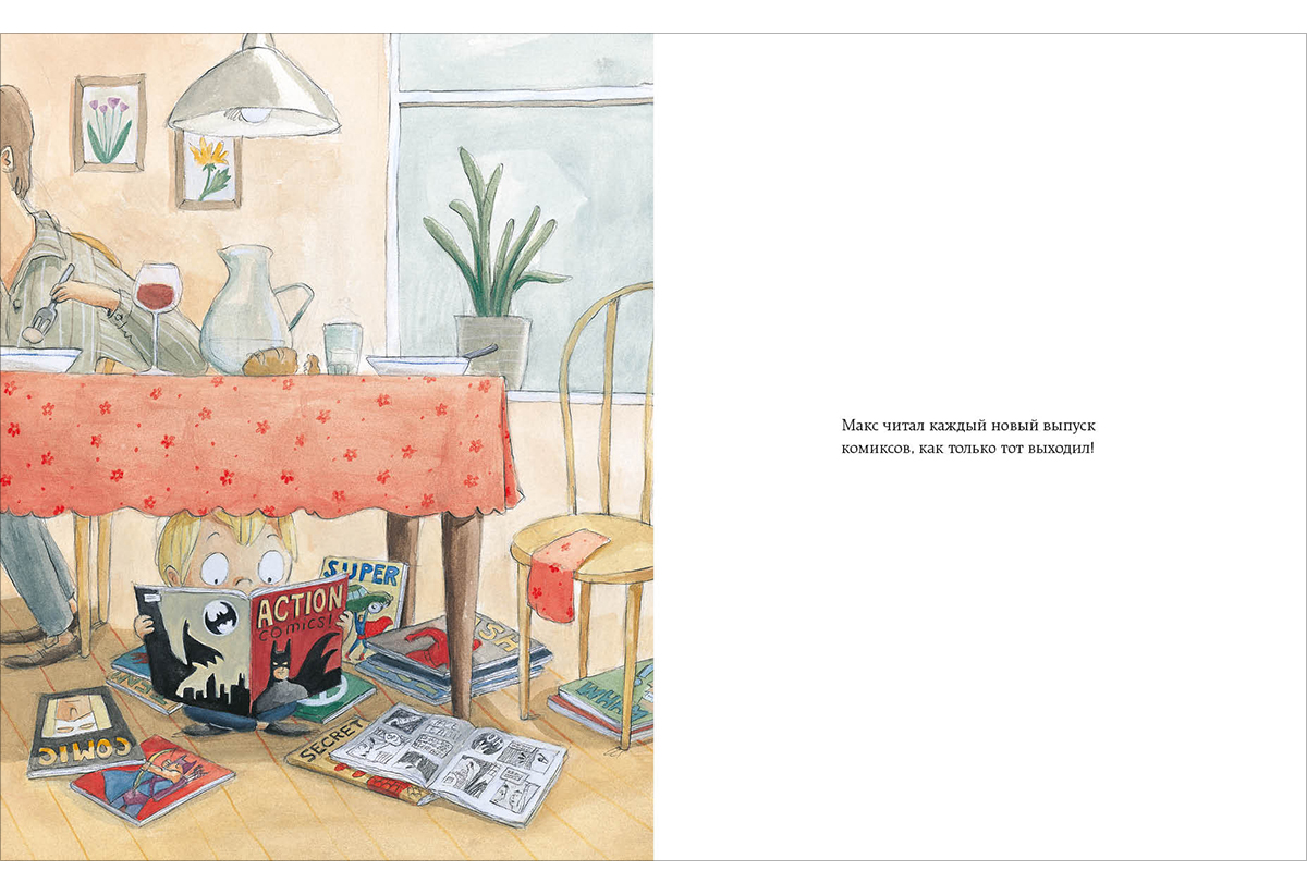 Больше всего на свете Макс обожает читать комиксы, в которых отважные и храбрые супергерои спасают людей и животных… Однако есть такой герой, которого Макс особенно уважает и любит. Он не только может видеть сквозь стены, управлять целой армией роботов, но и путешествует вместе с Максом по всей планете. А ещё он… Как вы думаете, кто этот супергерой?