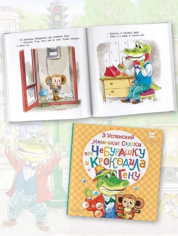 Чебурашка – доброе и наивное существо. Ему очень хотелось пригласить Гену к себе в гости, чтобы порадовать чаем с конфетами. Тольок он случайно забыл, что у него дома нет ни чайника, ни конфет. Но Гена не стал сердиться на Чебурашку, а просто взял и накрыл на стол. Чебурашка был очень доволен.