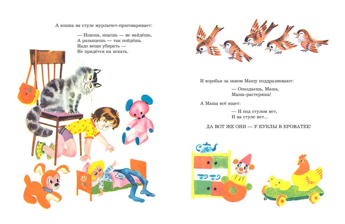 Имя маленькой героини этой книжки давно стало нарицательным. Кто не слышал в детстве от мамы ласкового «Эх ты, Маша-растеряша!» и назидательного «Надо вещи убирать, не придётся их искать!». Что поделаешь, все дети немного растеряшки… Но ведь досадные потери случаются порой и со взрослыми! Наверное, поэтому и большим, и маленьким читателям так нравится эта поучительная, но забавная и добрая история, рассказанная замечательной писательницей Любовью Воронковой.
