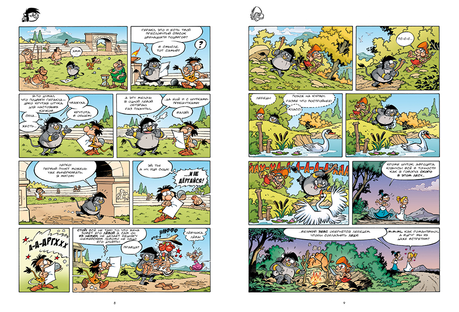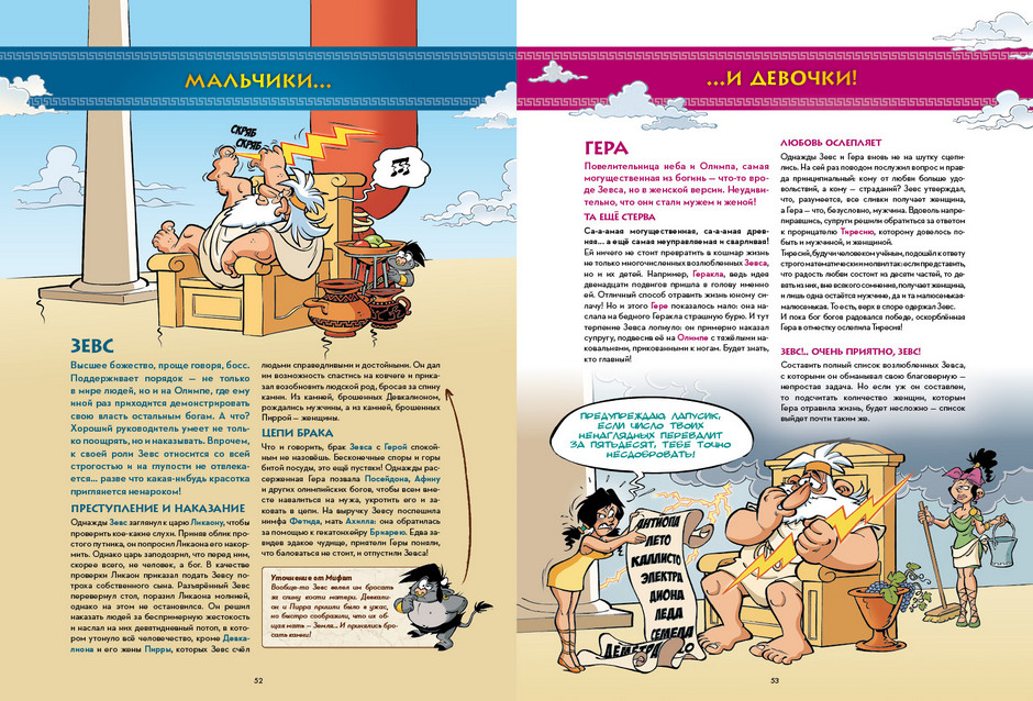 Новые комиксы «Мифята» от издательства «Пешком в историю» отправят вас не в мир насекомых и не в глубины океана, а прямиком в прошлое. И не куда-нибудь, а в Древнюю Грецию, в окрестности горы Олимп, где, как известно, живут древнегреческие боги. Эти боги – пока что совсем ещё дети, они шалят, проказничают, попадают в разные переделки. С ними не соскучишься! А возглавляет эту команду озорников крошка Минотавр, критское чудовище с головой быка, – несколько грубоватый, но от этого не менее обаятельный. Таврик, как называют Минотавра друзья, познакомит вас с Атлантом, Афродитой, Гераклом, Гермесом и многими другими будущими героями, богами и полубогами. Каждому из них предстоит найти в себе какую-нибудь суперсилу, ведь только обладая ей можно войти в новую команду богов, которую собирает сам Зевс.
