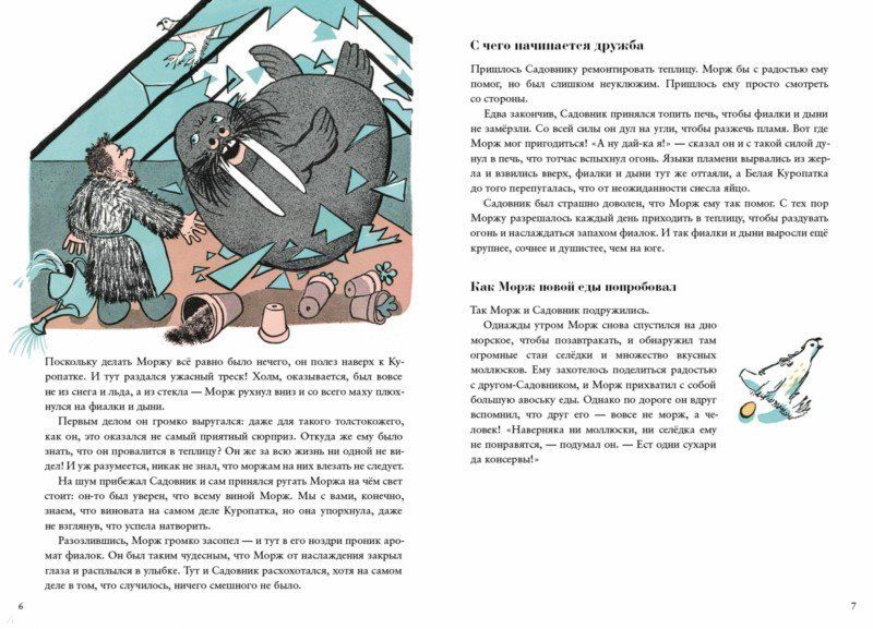 Как и многие приключения, эта история началась со спора: Садовник пообещал Профессору вырастить дыни и фиалки даже на заснеженном, заледенелом севере. Садовник построил теплицу, в которую и свалился однажды неуклюжий Морж. Там-то этот милый увалень впервые отведал сладкий южный фрукт и вдохнул аромат незнакомых цветов.