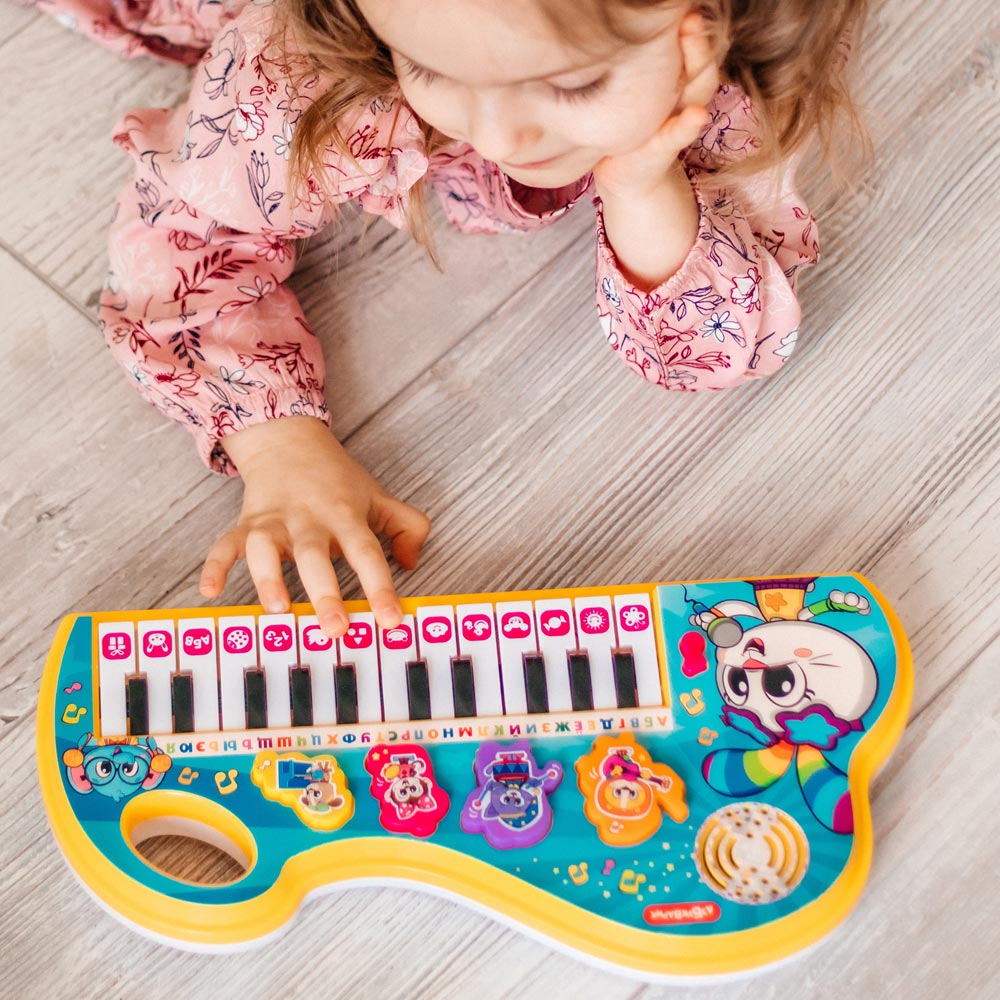 Играй на клавишах пианино – запоминай ноты и развивай музыкальный слух. А в режиме «Волшебное пианино» каждый ребенок сможет сам сыграть 5 известных мелодий («Собачий вальс», «Как у наших у ворот», «Каравай», «Два весёлых гуся», «Серенький козлик»).