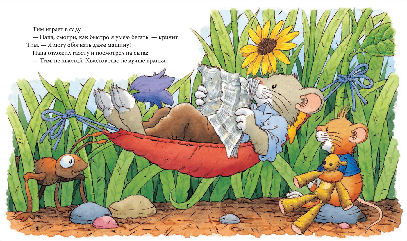 Серия книг про смешного и обаятельного мышонка Тима поможет малышам понимать, признавать и называть свои чувства, научиться общаться со сверстниками и справляться с трудными ситуациями. Мышонок Тим иногда лжет – случайно, не подумав или потому, что стыдно сказать правду. Почему же так опасно врать? Скоро мышонок Тим это узнает и все поймет. Художник: Кампанелла М.