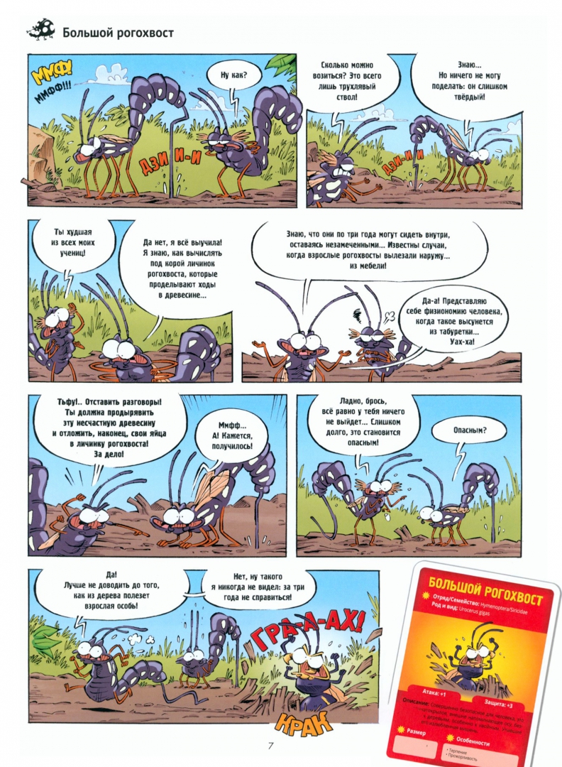 Просто энтомологам иной раз тоже хочется немного развлечься… Ещё вы узнаете о том, как насекомые помогают криминалистам, какие бывают гусеницы и что такое конвергентная эволюция! Ну, а традиционную для серии обучающую тетрадь авторы на сей раз озаглавили так: “На службе науки”. О да, насекомым есть чему нас научить, даже не сомневайтесь!