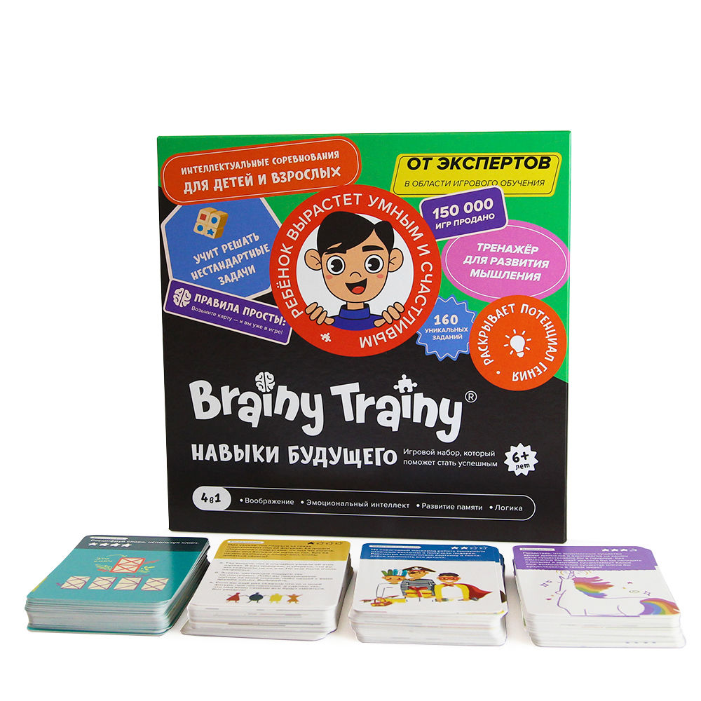 Обучающий набор Brainy Trainy «Навыки будущего» – это идеальный подарок, который изменит жизнь ребёнка! В большой и красочной коробке – 160 лучших заданий из хитовой серии игр-тренажёров Brainy Trainy. Каждое задание – настоящее приключение!