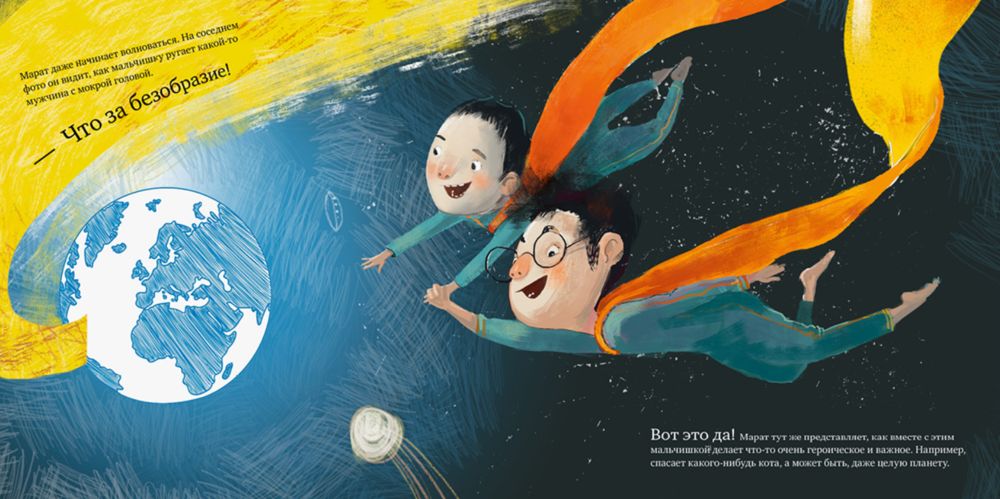 “УРА, ПРИДУМАЛ! Я стану супергероем! Тогда уже точно не заскучаешь”, – решил маленький Марат. А что делают настоящие супергерои? Конечно, спасают мир! Вот только папа Марата совсем не разделяет его энтузиазма… “И в кого ты такой?” – вечно повторяет он. Может, папа просто забыл, что когда‑то и он спасал мир?! Нужно только немного напомнить ему! Читайте книгу “Папа и я!” и узнайте, кто и как раскрыл все семейные секреты.