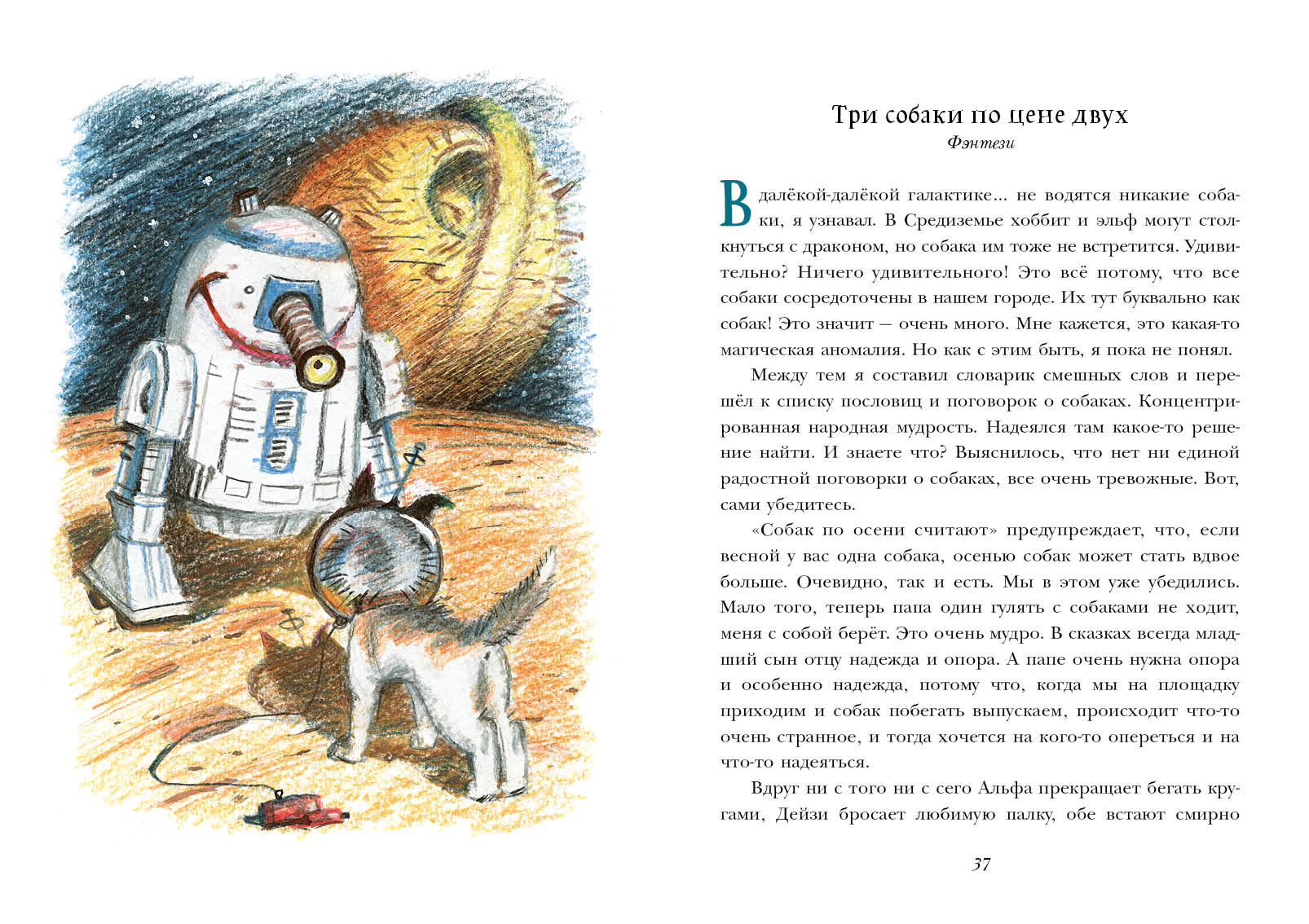 Андрей, главный герой этой замечательной повести, коллекционирует смешные слова, мечтает о космосе и… терпеть не может собак. Уж лучше крокодил, лишь бы в клетке сидел, считает мальчик. И вдруг привычная жизнь идёт кувырком — мама приносит в дом щенка. Что делать?! Андрей так расстроен, что даже космонавтом теперь быть не хочет! А если не космонавтом, то кем? Как понять, какой ты, если и ты сам, и мир вокруг тебя постоянно меняются? И кто поможет разобраться в себе? «Переводчик с собачьего» — это смешные и трогательные истории о взаимопонимании и доверии, о том, как часто мы никак не можем отыскать то, что находится совсем рядом.