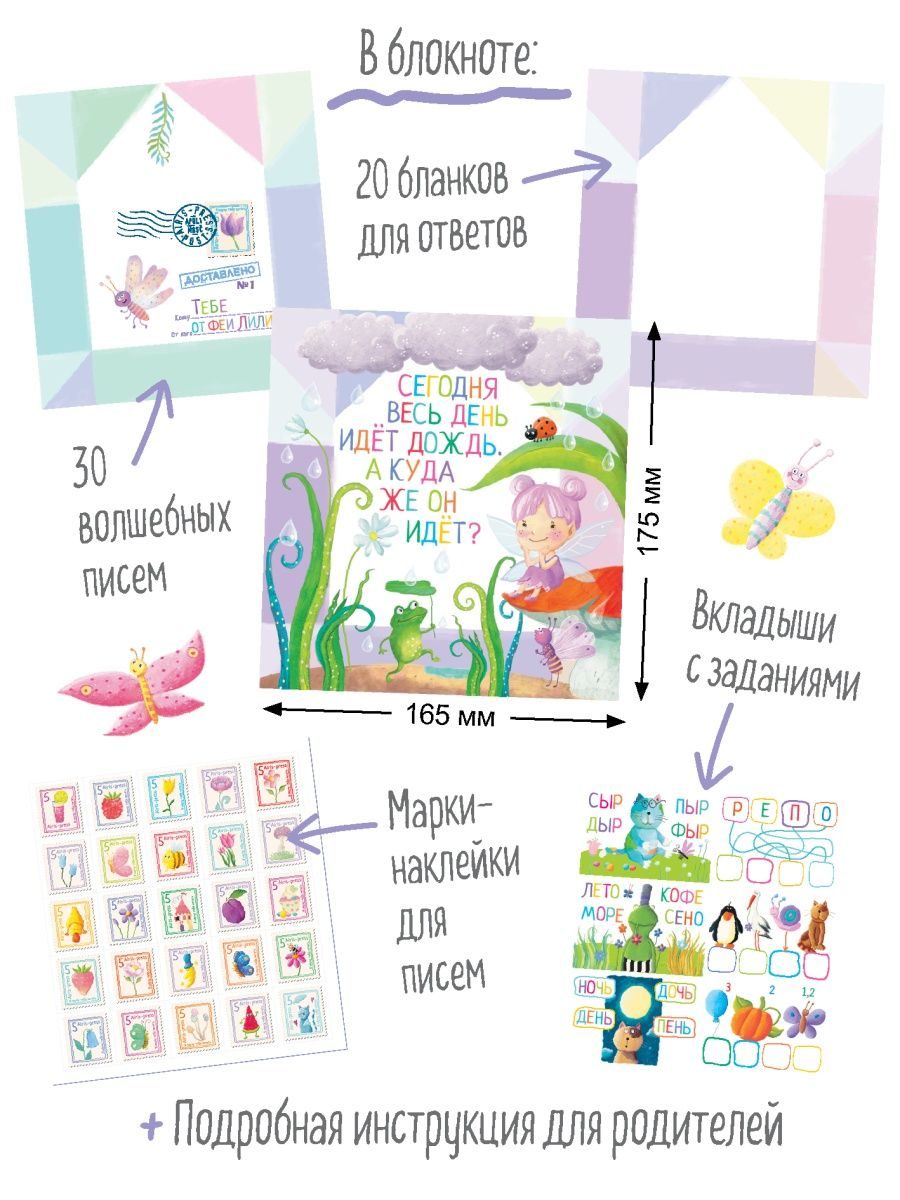 В блокноте представлен уникальный метод обучения чтению. Это 30 волшебных писем от феи Лили, адрессованных ребёнку. Ребёнок читатет их сам, без помощи взрослых. Родителям нужно просто каждый вечер незаметно класть готовое письмо под подушку спящего ребёнка. Уровень сложности рассчитан на детей, которые уверенно читают по слогам. При желании фее можно написать ответ. Для этого в блокноте есть готовые письма-конверты и марки-наклейки. Также в письмо можно дополнительно вложить листочек с интересным заданием.