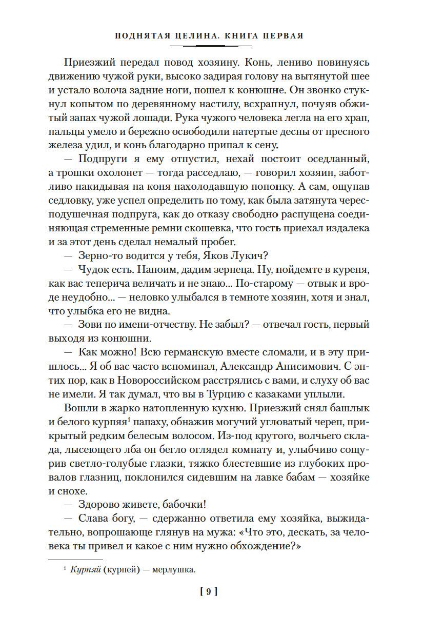 Михаила Александровича Шолохова многие поколения читателей знают как автора всенародно любимого романа “Тихий Дон”, сборника “Донских рассказов” и таких произведений, как “Они сражались за Родину”, “Судьба человека”, “Поднятая целина”. В 1965 году писателю была присуждена Нобелевская премия по литературе “за художественную силу и цельность эпоса о донском казачестве в переломное для России время”. В романе “Поднятая целина” рассказана история установления советской власти в суровых донских краях. Яркими, драматичными красками Шолохов изобразил в нем переломный момент истории нашей страны, когда обращались в прах многовековые устои и традиции, уступая место новым порядкам. Увлекательный сюжет, неоднозначные характеры, историческая достоверность (Шолохов сам был свидетелем многих событий, описанных в книге) позволяют роману “Поднятая целина” оставаться в числе самых известных произведений советской литературы.