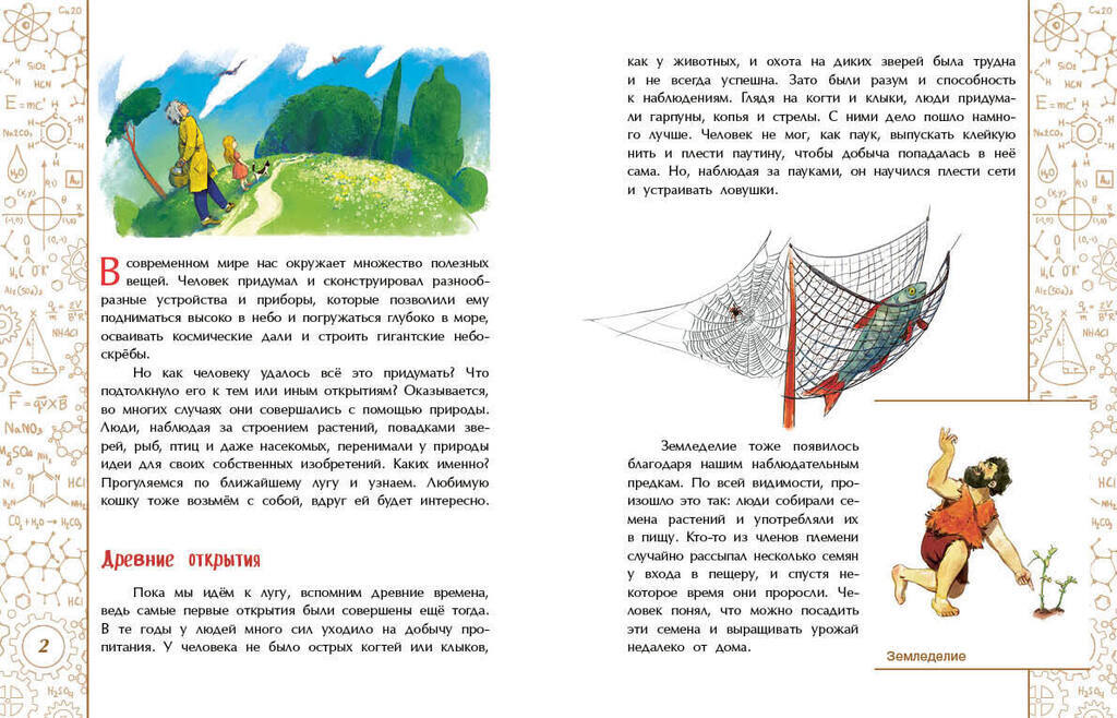Крыло самолёта, акваланг, рыболовные сети, бумага, застёжка-липучка, светоотражатели… Тысячи вещей, делающих нашу жизнь удобнее и безопаснее, люди придумали, наблюдая за природой и перенимая идеи для своих собственных изобретений у растений, зверей, рыб, птиц и насекомых. Для младшего школьного возраста.