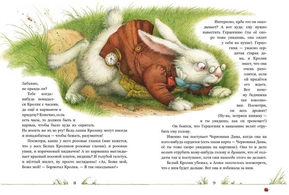 В ваших руках — всемирно известная история «Приключения Алисы в Стране чудес», которую пересказал для малышей сам автор. Льюис Кэрролл, повествуя об удивительных событиях, случившихся с героиней, ведет диалог с ребенком, предоставляя ему возможность задуматься над теми вещами, которые, на первый взгляд, и размышлений совсем не требуют. Маленькая мечтательница Алиса, доверчивая, любопытная, жизнерадостная, готовая поверить в любую небылицу, совершает волшебное путешествие в мир сна, игры и загадки. Здесь ходить на голове — обычное дело, а съев пирожок или кусочек гриба можно вырасти или, наоборот, уменьшиться в росте. Здесь живет Чеширский кот, который умеет исчезать и оставлять после себя улыбку, а Белый кролик постоянно спешит, поглядывая на карманные часы… Мягкие и гармоничные иллюстрации Елены Базановой поражают точностью деталей и бережным отношением к тексту. А милый, нежный и непосредственный образ Алисы передает все очарование и гибкость ума главной героини. Перевод Нины Михайловны Демуровой делает текст доступным даже для самых маленьких читателей. Добро пожаловать в Страну чудес — страну удивительных вопросов и еще более удивительных ответов!