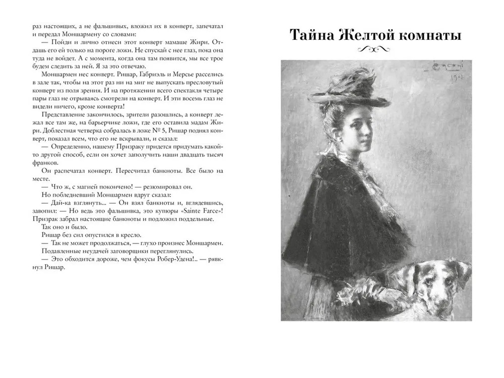 Гастон Леру — классик детективного и мистического романа. Вот уже более века по его книгам снимаются фильмы и сериалы, ставятся спектакли и мюзиклы. Особенно прославился в этом плане один из самых известных французских романов всех времен — «Призрак Оперы». Эта захватывающая готическая история о загадочном существе, обитающем в подземельях знаменитой Парижской оперы, до сих пор способна держать в напряжении читателя от первой до последней страницы. В настоящее издание, помимо «Призрака Оперы», вошли первые, и самые известные, романы о приключениях репортера Жозефа Рультабийля: «Тайна Желтой комнаты» (Джон Диксон Карр считал «Тайну…» лучшей историей о преступлении в герметично замкнутом пространстве) и «Духи дамы в черном». Также в книгу включена никогда не переводившаяся на русский язык дополнительная глава к «Призраку Оперы», входившая в первую редакцию романа.