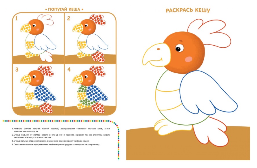 В книжке «Рисуем пальчиками» ваш ребёнок освоит пальчиковую технику рисования.