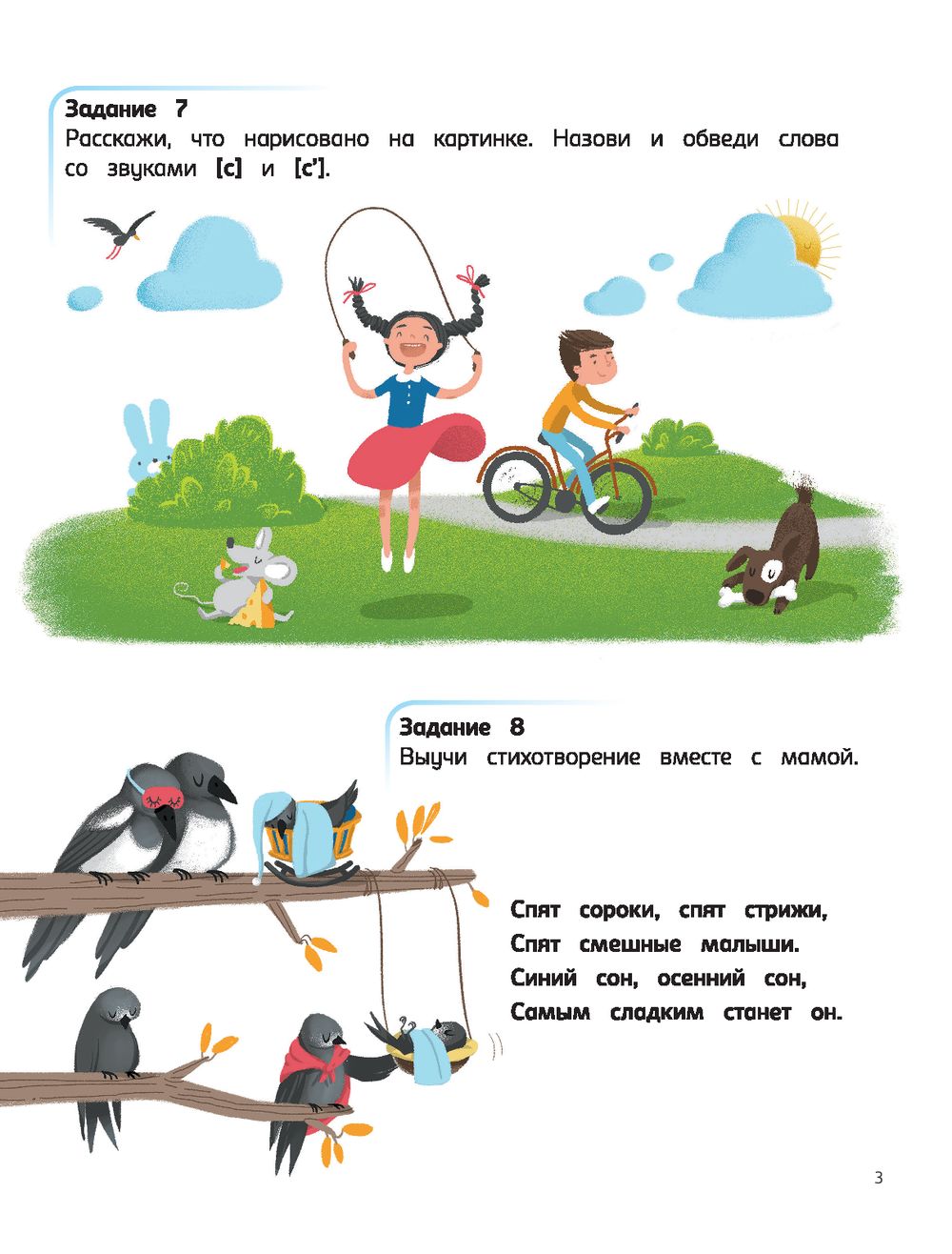 Серия пособий “Логопедические тренажёры с наклейками” поможет закрепить правильное произношение звуков детям дошкольного и младшего школьного возраста. Каждая книга – это цикл разноплановых игровых занятий, выполняя которые ребенок отрабатывает произношение сложных для него звуков в слогах, словах, предложениях. Выделяйте для занятий 10-15 минут в день: этого будет достаточно, чтобы ребенок не только научился красиво и правильно произносить звуки, но и пополнил словарный запас, улучшил навыки письма, состояние мелкой моторики, развил внимательность, усидчивость, а также зрительное и слуховое восприятие. Обязательно отмечайте успехи своего ученика и хвалите его! Это поможет сохранить мотивацию осваивать материал дальше. Ещё один бонус этих пособий – мотивирующие наклейки, которые можно выдавать ребёнку после выполнения заданий на каждой странице. Собирая наклейки-поощрения, он будет видеть свой прогресс.