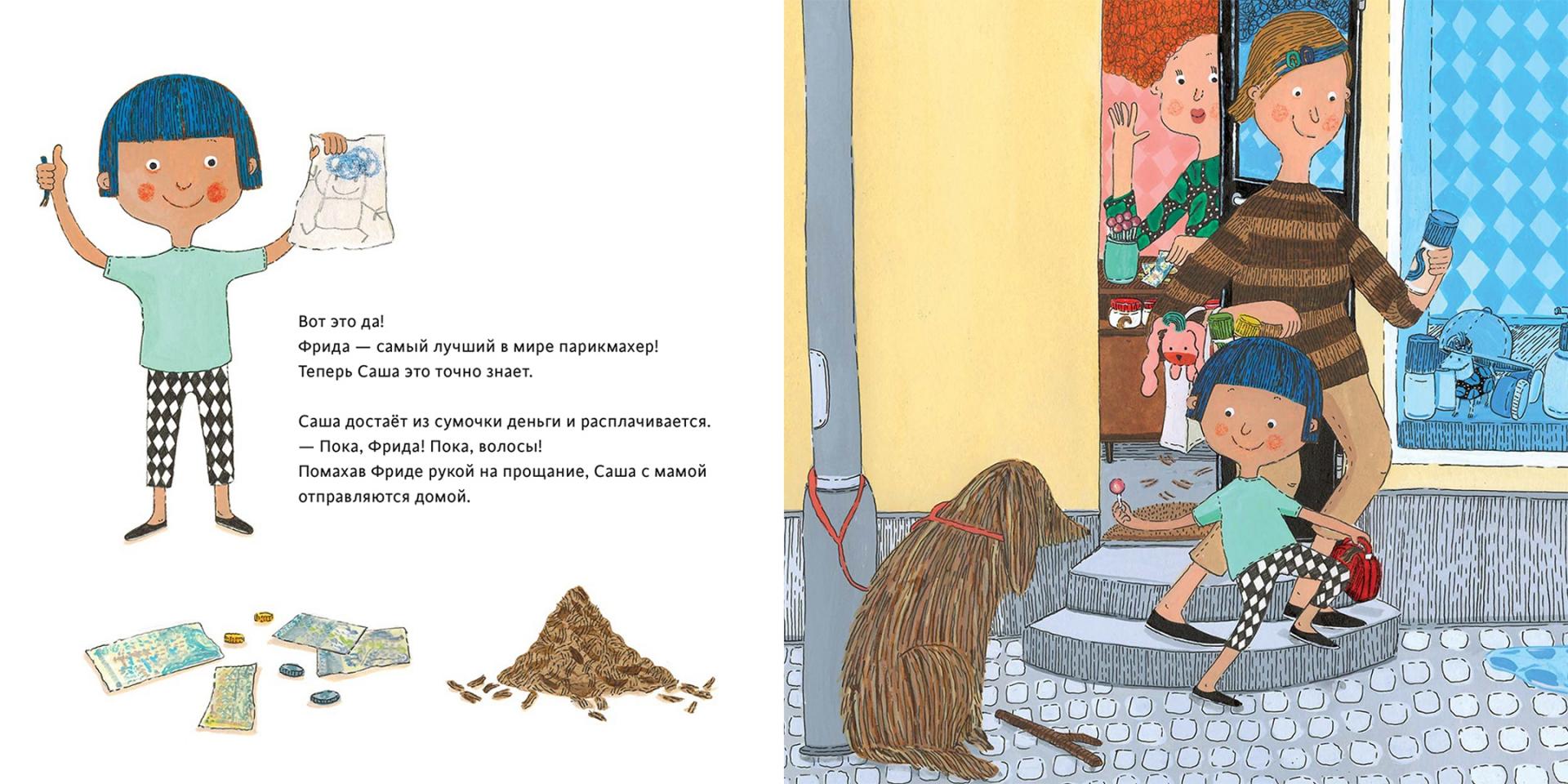 У Саши отросли длинные волосы, пора стричься. Мама записала ее к парикмахеру. Саша с нетерпением ждет своей очереди. Какую выбрать прическу? Волосы в форме шипов, круглая прическа или короткая стрижка? Пожалуй, лучше всего постричься в синий цвет, – думает Саша.