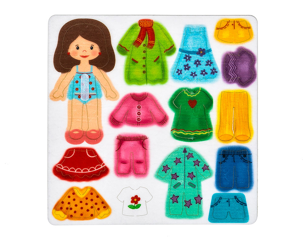 3. Используйте фетровый набор в различных сюжетных играх: «Одеваемся на прогулку», «Магазин одежды» и в других играх.