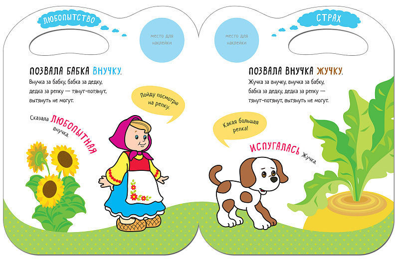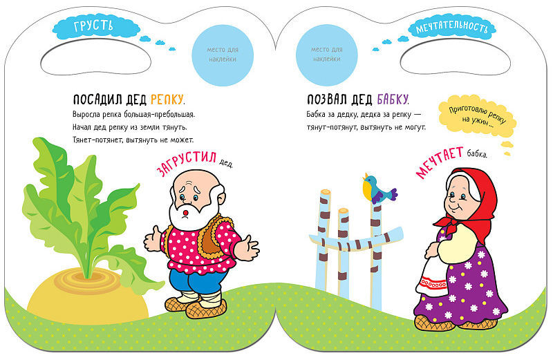 Эта яркая книжка с наклейками познакомит ребенка с радостью, грустью и другими эмоциями. В этом ему поможет любимая русская народная сказка «Репка». Внимательно рассматривая красочные иллюстрации и используя подсказки, малышу предстоит правильно распределить наклейки по страницам. Так он научится распознавать эмоции и настроение сказочных героев, сопереживать им. Занятия по книге «Репка» серии «Сказки с эмоциями» способствует развитию эмоционального интеллекта, мелкой моторики, внимания и расширению кругозора.