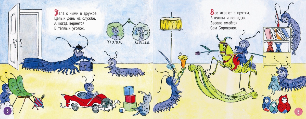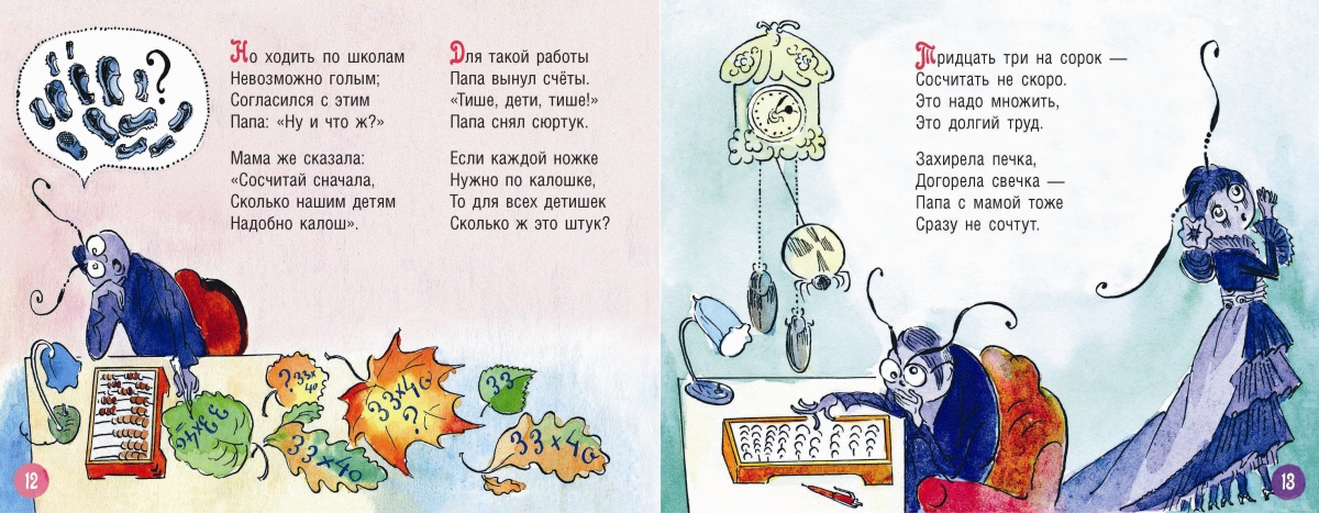 В семье сороконожек родились малыши, числом тридцать. Пока они росли, играли дома, спали в кроватках и ели пироги, родители были счастливы и довольны. Но вот пришла пора отправлять крошек в школу. А у тридцати сороконожек – у каждой по сорок ножек! Сколько же это нужно пар обуви? Мама и папа считали всю ночь и ужасались. А вы сможете сосчитать?Кукольный домик сороконожек, их милую утварь и игрушки нарисовал остроумный художник Михаил Битный.