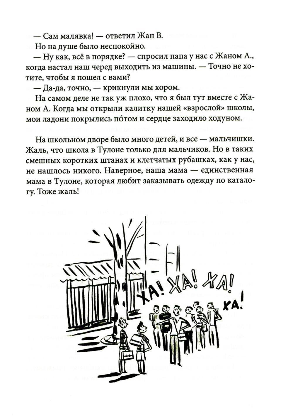 Уже знакомые нам по предыдущим книгам серии “Приключения семейки из Шербура” – “Омлету с сахаром” и “Летающему сыру” – братья Жаны и их родители переехали в Тулон. Папа, конечно, мастер на все руки, а у мамы всегда всё под контролем, но похоже, что год предстоит непростой. Еще бы, ведь Жан А. вместо подготовки к контрольной тайком собрался на вечеринку, Жан Б. вообще боится идти в новую школу, а вместе с Жаном В. они объявляют войну загадочным Касторам…