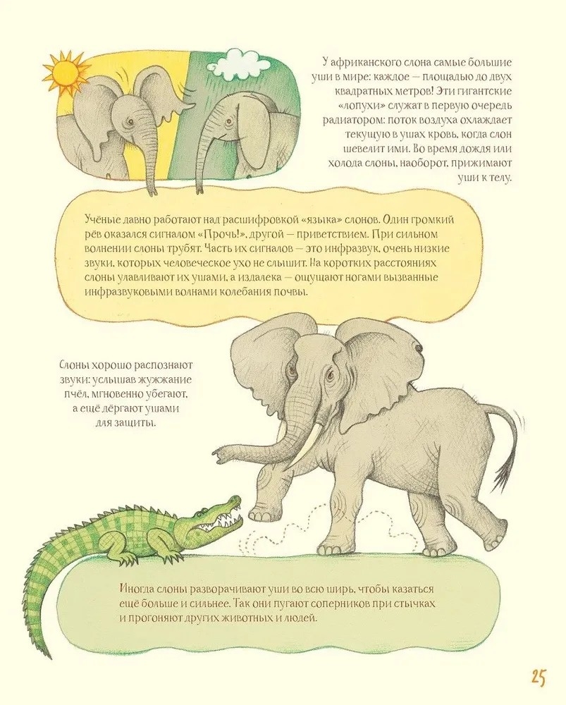 Из новой книги Лены Анлауф с рисунками Виталия Константинова вы узнаете, как много у ушей разных “профессий”. Ушные раковины не только усиливают звук, но и регулируют температуру тела, спасают от хищников (причём разными способами!), помогают животным разговаривать друг с другом да ещё и “улыбаться”. А бывает, что они мешают своим обладателям – и как же звери справляются? Уши-мухобойки, уши-ветроуказатели, маскировочные уши, бойцовские уши, ложные уши – добро пожаловать в богатый и разнообразный ушной мир!