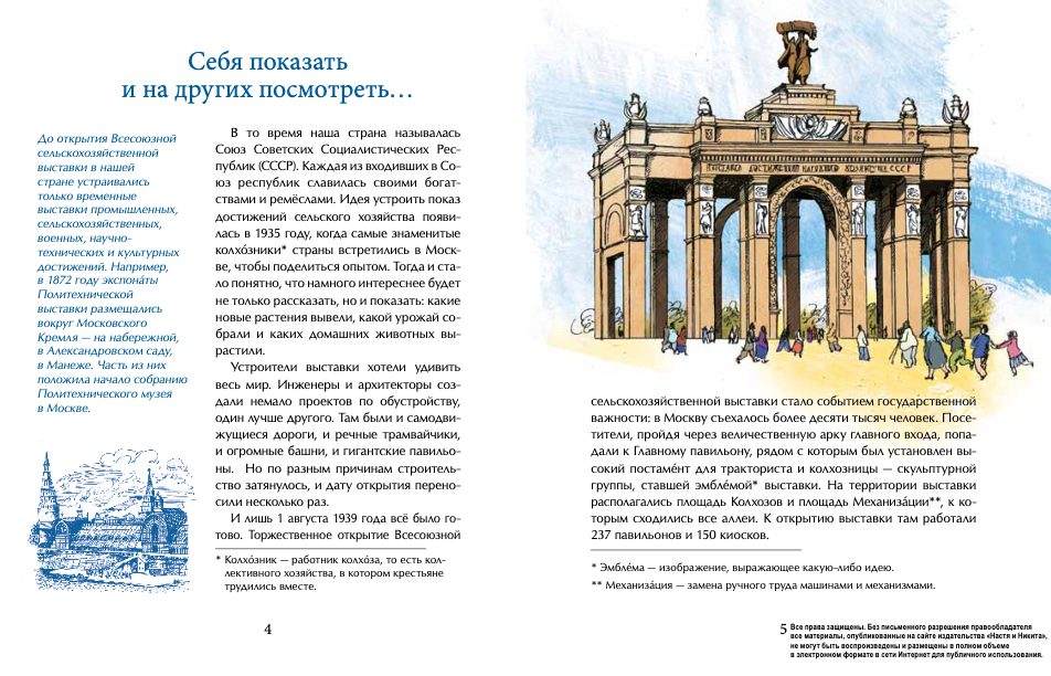 Скульптура “Рабочий и колхозница”, Зелёный театр, сказочной красоты фонтаны… ВДНХ – не только замечательный парк. В павильонах этой легендарной выставки всегда можно было увидеть самые новые технические достижения и изобретения, узнать, как живут разные народы. Яркие страницы истории “выставки чудес” – тема этой книги.2-е издание.