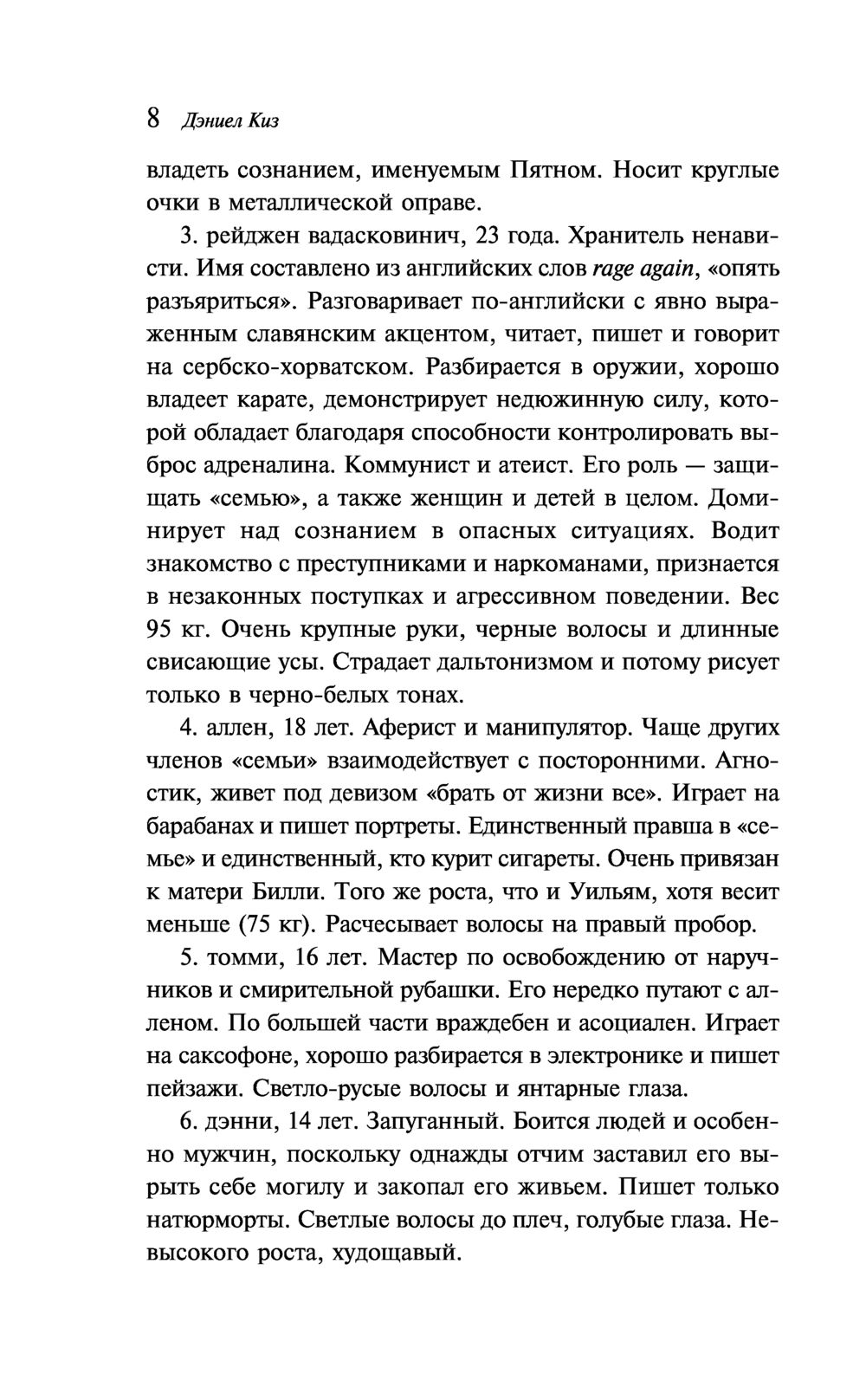 Когда Билли Миллигана переводили в психиатрическую клинику для преступников в Лиме, штат Огайо, он еще не знал, что это дорога в ад. Избиения, вымогательства, смирительная рубашка, жестокие пытки, предательства и самоубийство друга… В этом мире безумия и насилия Томми, – король побегов, интеллектуал Артур и брутальный югослав Рейджен, вынуждены использовать все возможности, чтобы выжить.