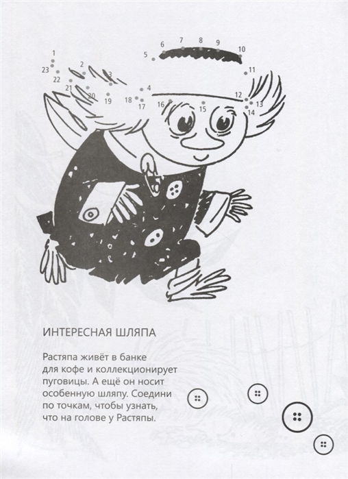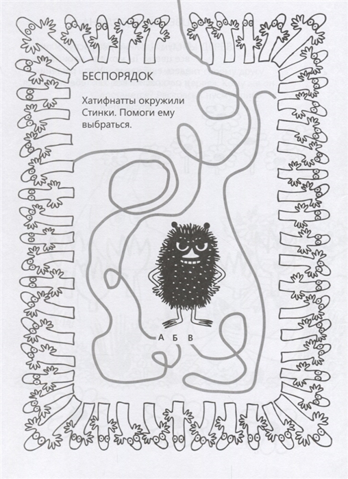 Неугомонные муми-тролли всегда заняты. Муми-мама рисует картины и теряет кисточку, Муми-тролль собирает ракушки и не может найти обратную дорогу, а Малышка Мю так и норовит уснуть в корзинке с вязаньем, запутавшись в пряже… Помочь им очень просто – надо пройти все лабиринты, раскрасить мир вокруг и наклеить любимых героев. Фантазировать можно бесконечно, ведь обитатели муми-дола очень хотят, чтобы вокруг них было как можно больше разных вещей, ярких и необычных. Творческие дети и родители с удовольствием поиграют с муми-троллями и наверняка обрадуются новой встрече с любимыми героями замечательной финской писательницы и художницы Туве Янссон в книге “Волшебные муми-тролли”.