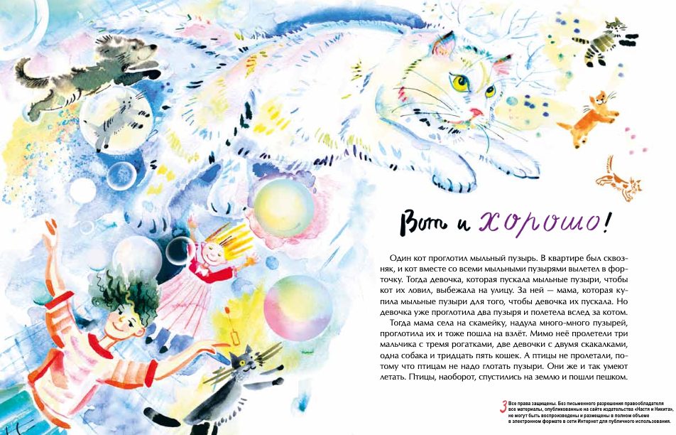 Проглотить мыльный пузырь и улететь в небо, превратиться из неуклюжих бегемотов в веселых мальчишек и девчонок и познакомиться с дружным, хотя и пугливым семейством носков, обитающих за батареей. Всё это можно сделать вместе с героями озорных рассказов этого веселого сборника.
