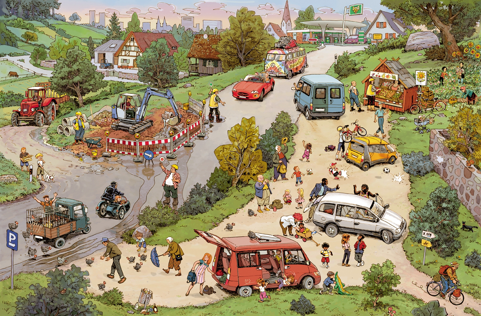 Как хорошо летом выбраться на загородную прогулку! На каждом развороте реалистичной книжки-картинки немецких художников Доро Гёбель и Петера Кнорра открывается новый деревенский вид. Самые маленькие дети с удовольствием рассматривают нарисованных в ней людей и домашних животных, ребята постарше и взрослые наслаждаются историей поездки одной обычной семьи за город.
