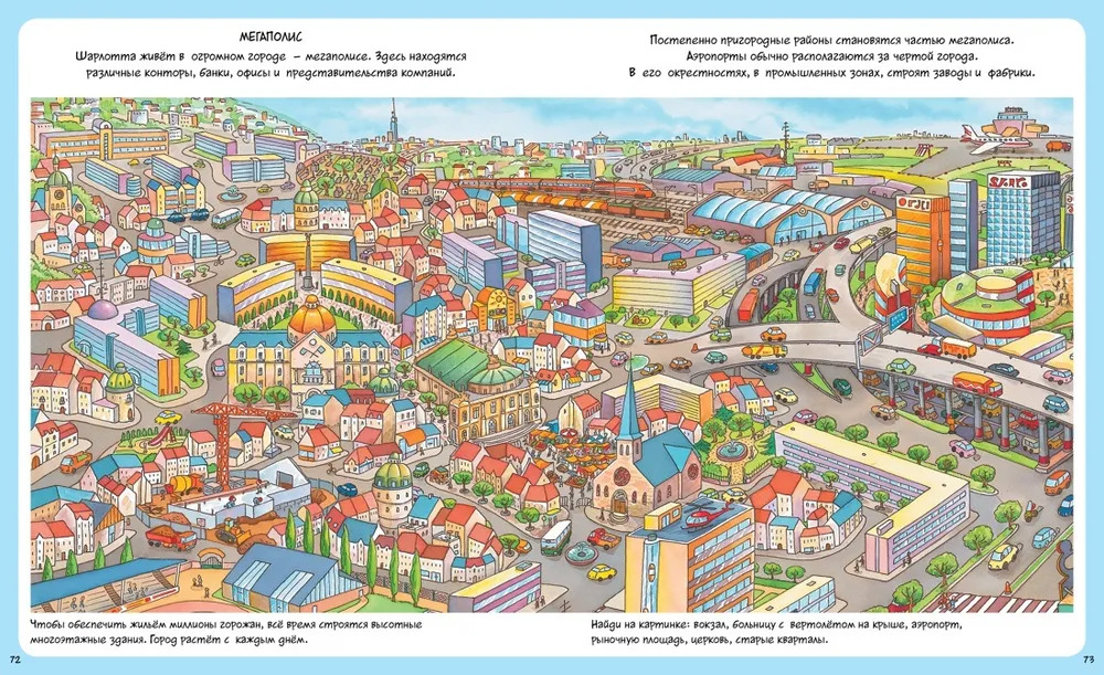 Путешествуя по страницам этой красочной энциклопедии, юные читатели узнают, как строили города и какими они были в разные исторические эпохи; когда на улицах появились первые поезда и многоэтажные здания; как в дома попадает электричество, откуда берется вода в кранах, как работает телефон. Книга научит ориентироваться в городе, правильно вести себя на улице, в метро и автобусе, объяснит, зачем нужны банк, почта и мэрия.
