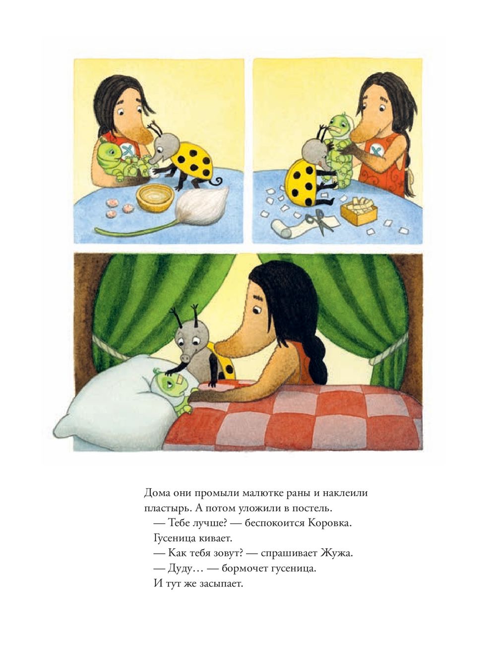 Эта книга – о дружбе. Как найти нового друга? Конечно, спасти его от неминуемой гибели! Теперь у Жужи и Коровки есть друг – гусеница Дуду. Как же здорово и весело играть вместе и заботиться друг о друге! Но однажды в уютном лесном мире, так похожем на долину муми-троллей и во многом навеянном творчеством Туве Янссон, с новым другом начинают происходить странные и загадочные изменения…Чудесная, полная юмора сказка для малышей о волшебстве природы, дружбе, любви, страхах и радостях.